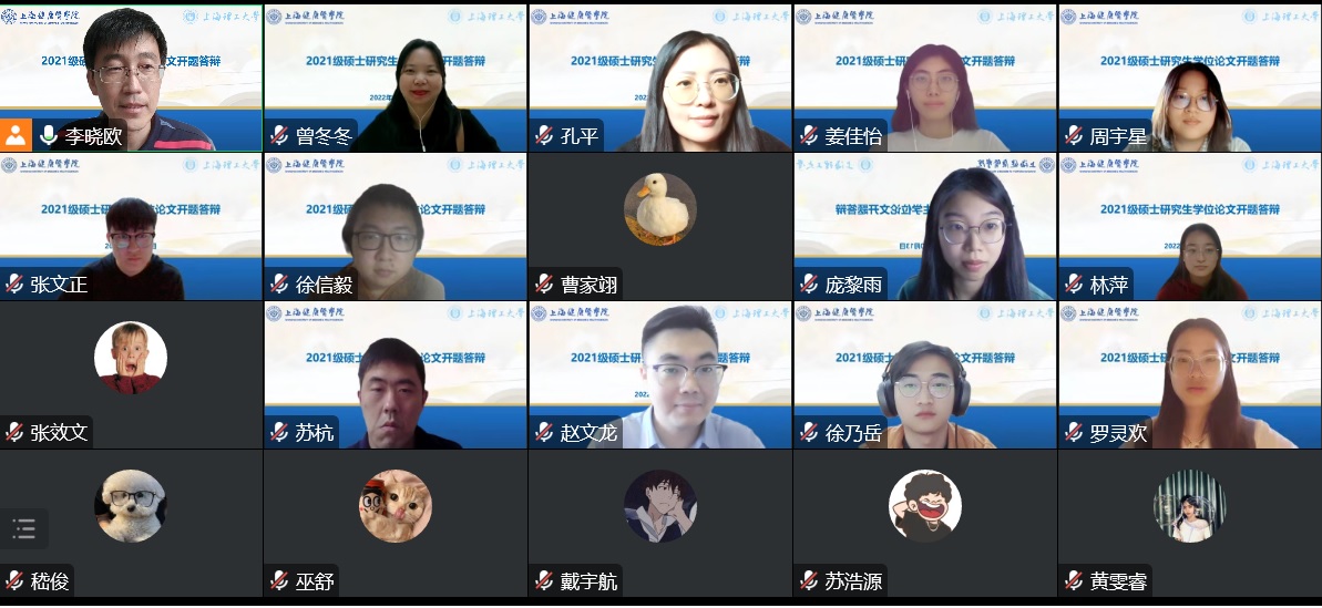 2021级的23位研究生分别围绕课题的研究目的、研究意义、研究内容和方法、研究计划等方面进行汇报。15位导师评委耐心听取了研究生们的汇报,进行逐一点评和提问,就研究选题的科学性、创新性和可行性进行了评价,并对研究设计与实施提出了建设性指导意见。