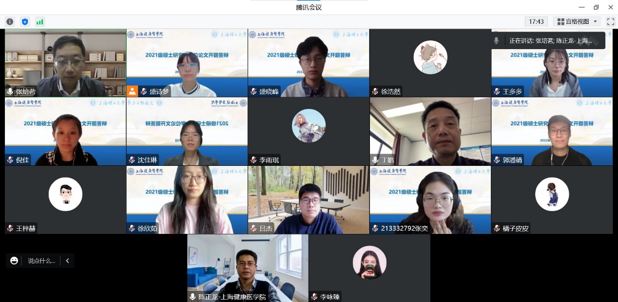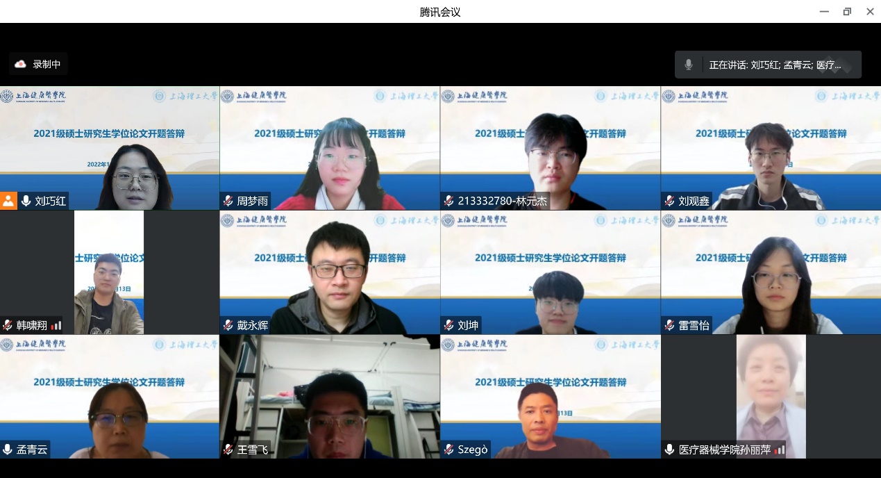 10月13日,伟德bv国际体育举办2021级上海理工大学联合培养硕士研究生开题答辩会。开题作为公司产品的关键环节,对研究生日后的学习、科研训练与学位论文撰写起着至关重要的作用。本次报告会采用线上模式,共分为3组,12位研究生导师担任评委,同时邀请上海市精神卫生中心苏杭副研究员、上海市医疗器械检验研究院王伟高级工程师、上海对外经贸大学戴永辉副教授,其他年级硕士研究生观摩学习。
