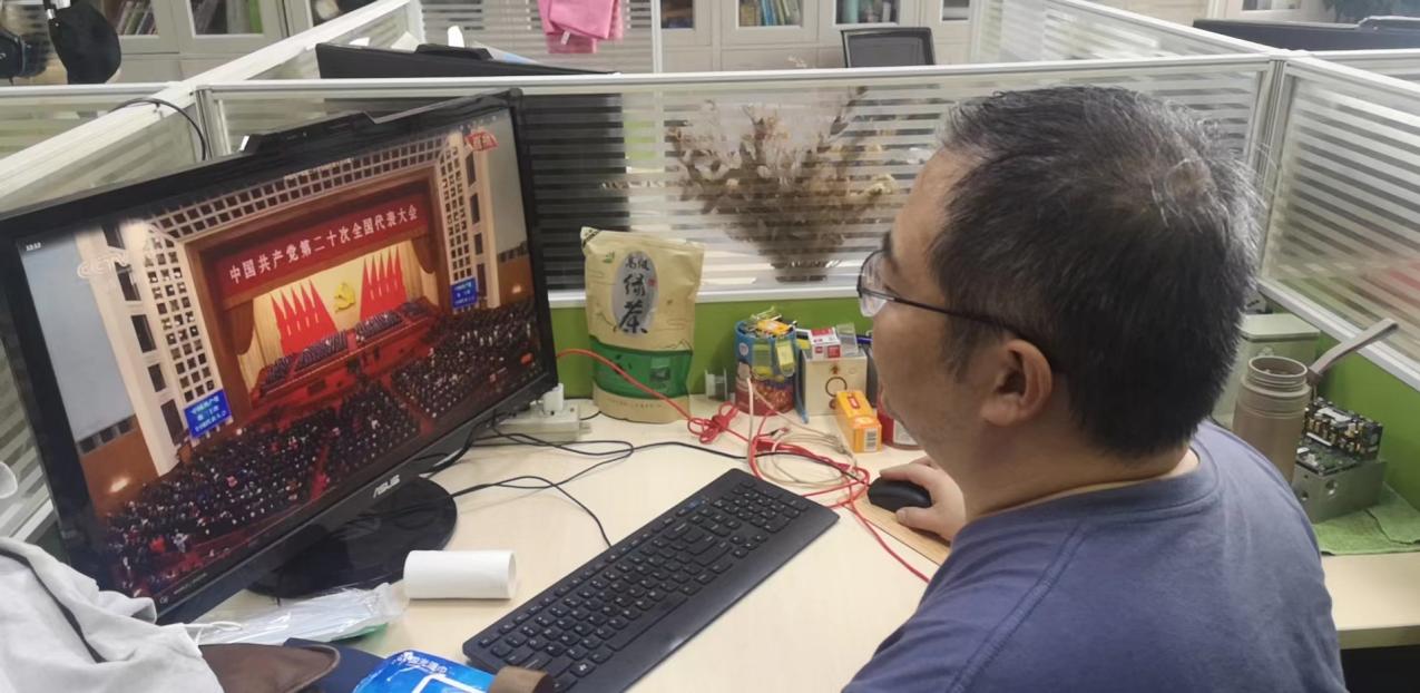 党支部书记商怀超讲到,“今天我怀着无比激动的心情观看了中国共产党第二十次全国代表大会开幕会,备受鼓舞。大会的主题是‘高举中国特色社会主义伟大旗帜,全面贯彻新时代中国特色社会主义思想,弘扬伟大建党精神,自信自强、守正创新,踔厉奋发、勇毅前行,为全面建设社会主义现代化国家、全面推进中华民族伟大复兴而团结奋斗’,中国共产党已走过百年奋斗历程,我们党立志于中华民族千秋伟业,致力于人类和平与发展崇高事业,责任无比重大,使命无上光荣。回望过往的奋斗路,眺望前方的奋进路,从党的十九大到党的二十大,是实现‘两个一百年’的历史交汇期,我将不断强化自身专业能力,不断增强学习的主动性和创造性,从党的历史经验中吸取前进的力量,为我国的医疗器械发展、中华民族的伟大复兴贡献出自己的一己之力。”