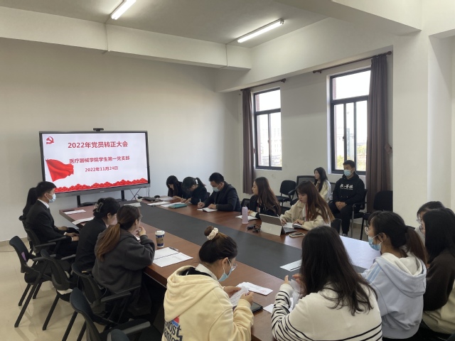 2022年11月24日下午13:00,伟德bv国际体育员工第一党支部在新南苑18号楼506室召开中共预备党员转正大会。员工第一党支部全体党员及4名拟转正同志入党介绍人出席会议,会议由杨晓哲同志主持。