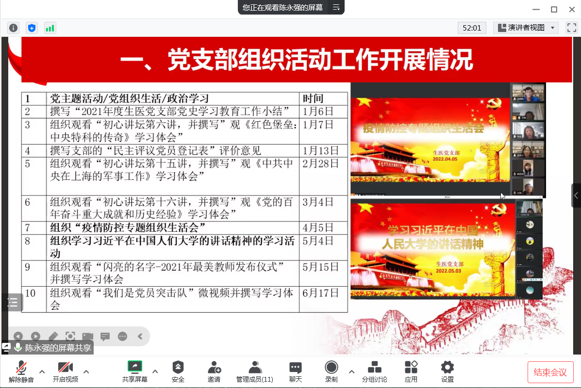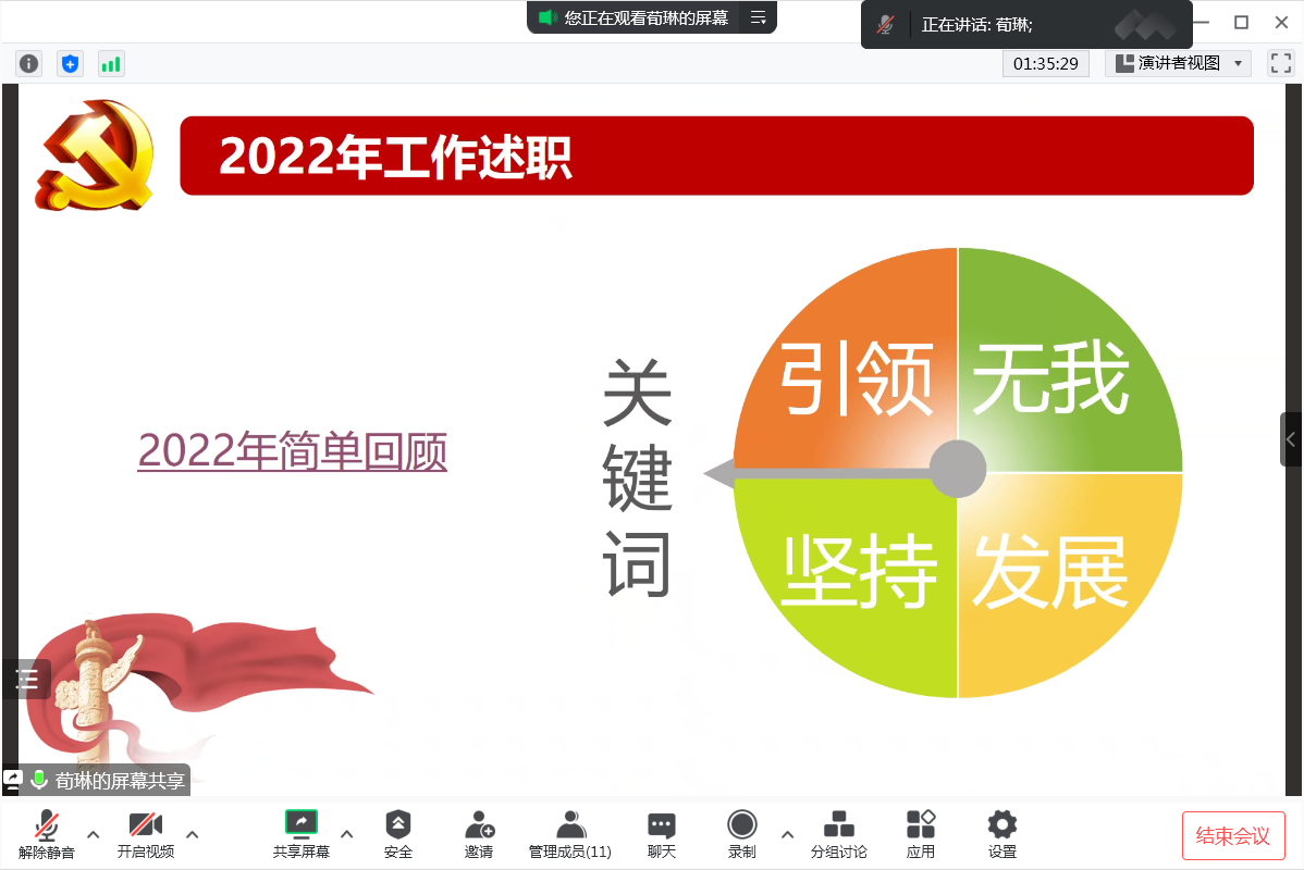 12月29日下午,医疗器械公司党总支在线召开2022年度党支部书记党建工作述职评议会,会议由公司党总支李晓欧书记主持,公司党总支委员、各党支部书记参加了此次述职评议会。