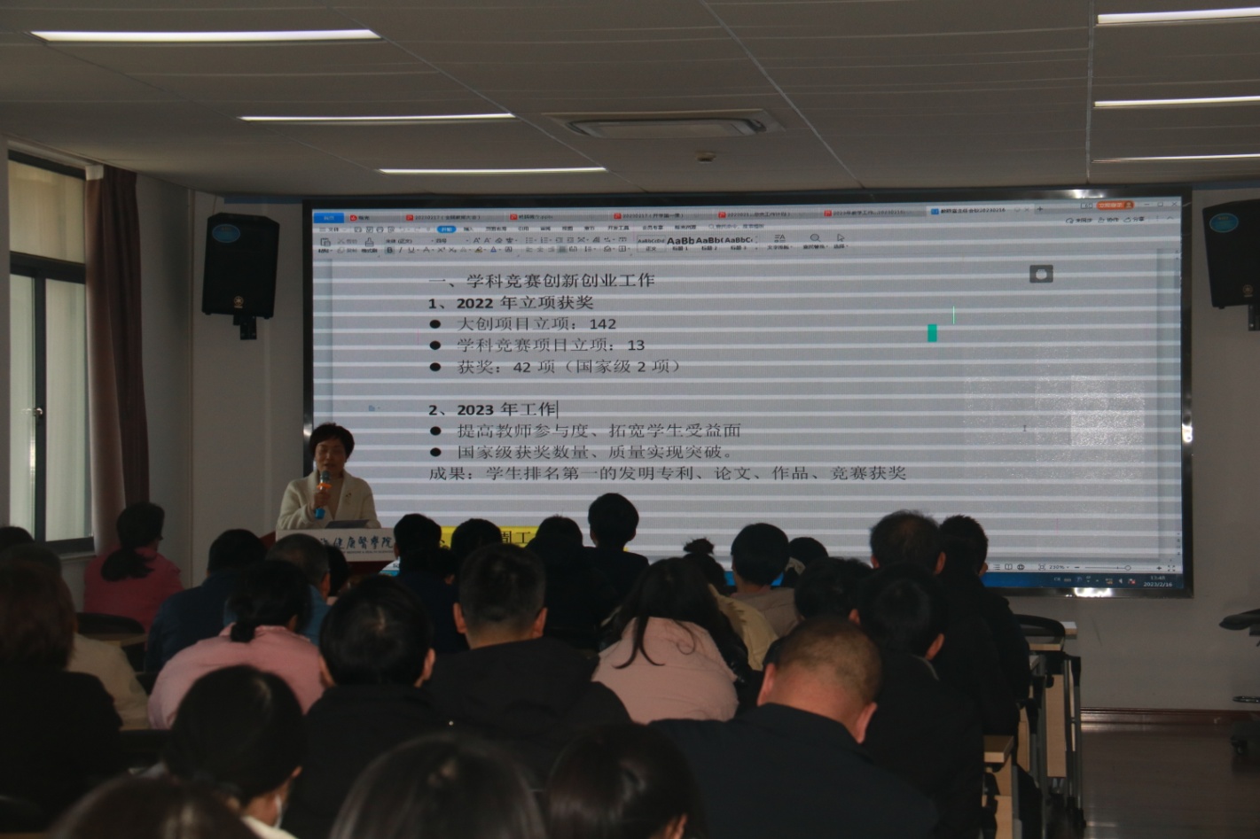 接着,张欣副经理从常规工作、教学改革、专业建设和合格评估等四个方面介绍了2023年公司的教学工作计划和管理举措,孙丽萍副经理从学科竞赛创新创业、实验室建设、实践基地建设、国际交流、招生宣传等方面介绍了2023年工作计划,员工工作负责人杨美老师从思政教育、心理教育、奖勤补贷等方面介绍了员工工作提升举措。