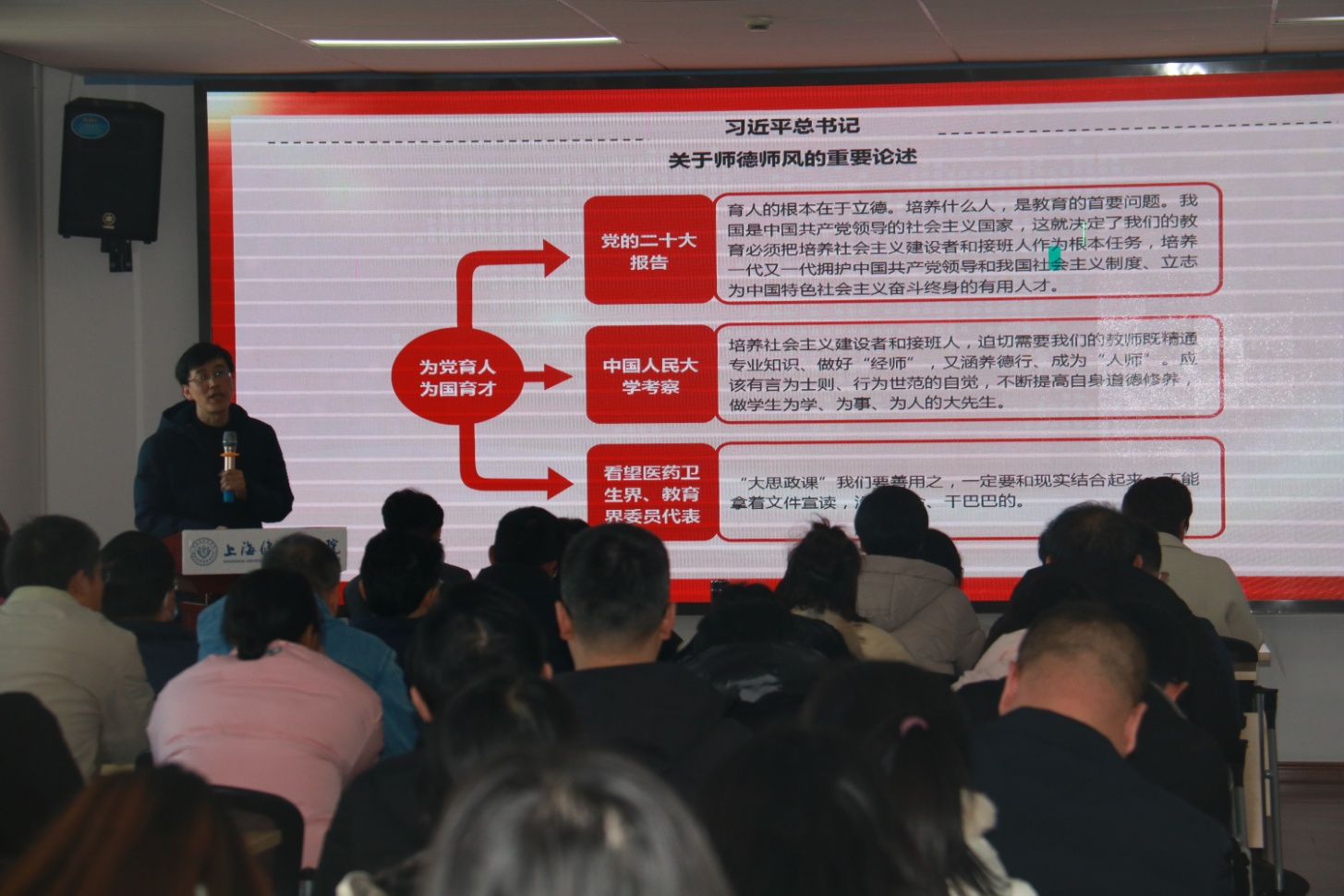 首先,李晓欧领学习近平总书记在党的二十大报告、2022年4月25日中国人民大学考察、2021年3月6日看望全国政协十三届四次会议的医药卫生界、教育界委员时关于师德师风建设的重要论述。