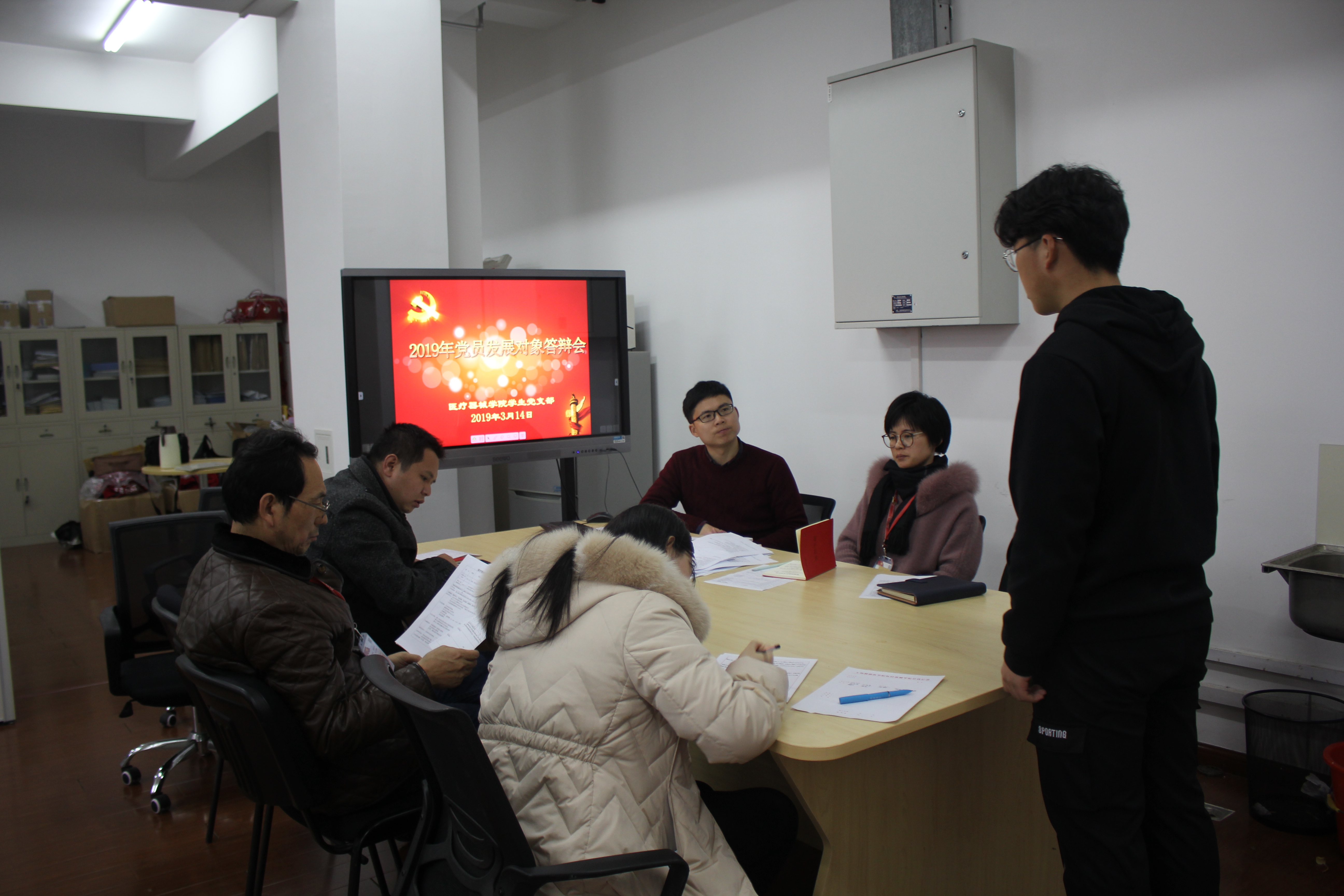 3月14日晚,伟德bv国际体育员工党支部在新南苑18号楼509室举行2019年员工党员发展对象答辩会。来自17临床工程技术本科班、17生医工本科班的彭家睿、钱宽、刘文倩等16名入党积极分子参加了答辩会。公司党总支书记王云光老师、专职党建员原亮老师、员工党支部书记叶剑辉老师、辅导员常银龙、李若洋、李茜、殷冬军老师担当答辩评委,针对员工的入党动机、政治思想、日常表现以及党员群众意见等方面进行了深入细致的考察。