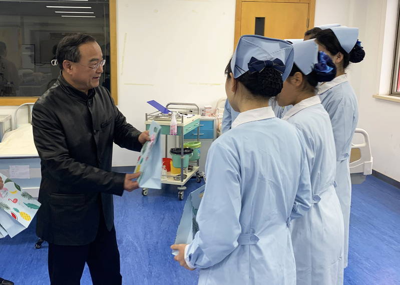 3月27日伟德bv国际体育董事长黄钢在附属卫公司党政班子的陪同下,亲切慰问了在徐汇校区护理实训中心备战2019年全国职业院校技能大赛中职组护理技能赛项的员工和指导老师。