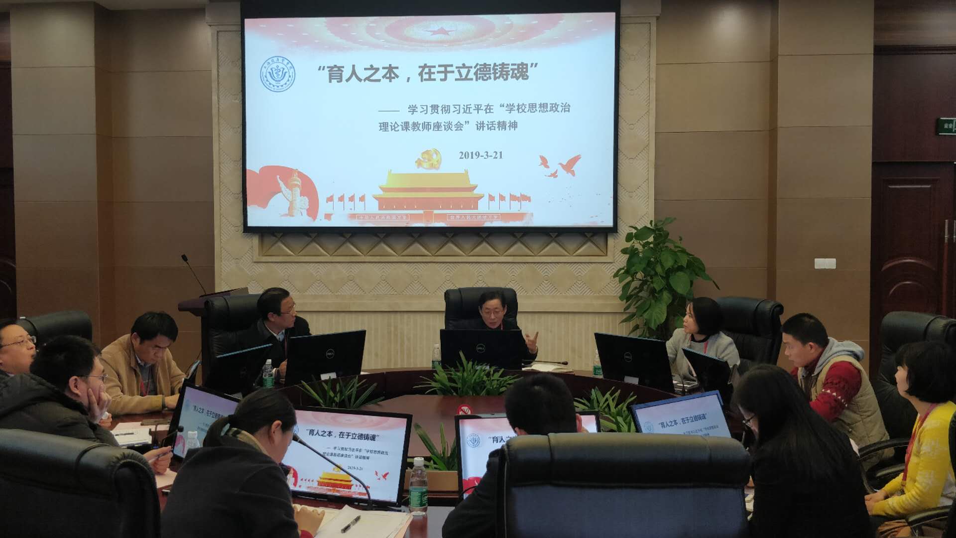 2019年3月21日,公司党委书记郑沈芳与马克思主义公司全体思政课教师在北苑1号楼110室召开交流研讨会,集体学习贯彻习近平在公司思政理论政治课教师座谈会上的讲话精神。宣传部、人事处(党委教师工作部)、教务处、员工处等相关部门负责人以及部分辅导员老师参加了交流研讨。会议由马克思主义公司经理孙玉良主持。