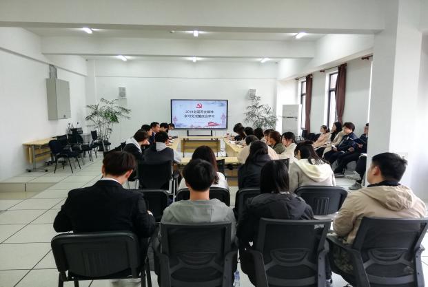 首先,叶剑辉老师介绍了本次会议的流程,并由殷音同志向大家介绍了今年两会的基本概况,她分享了自己学习2019全国两会精神的心得体会,并联系自身,阐述了如何把两会精神贯彻到日常学习生活中。