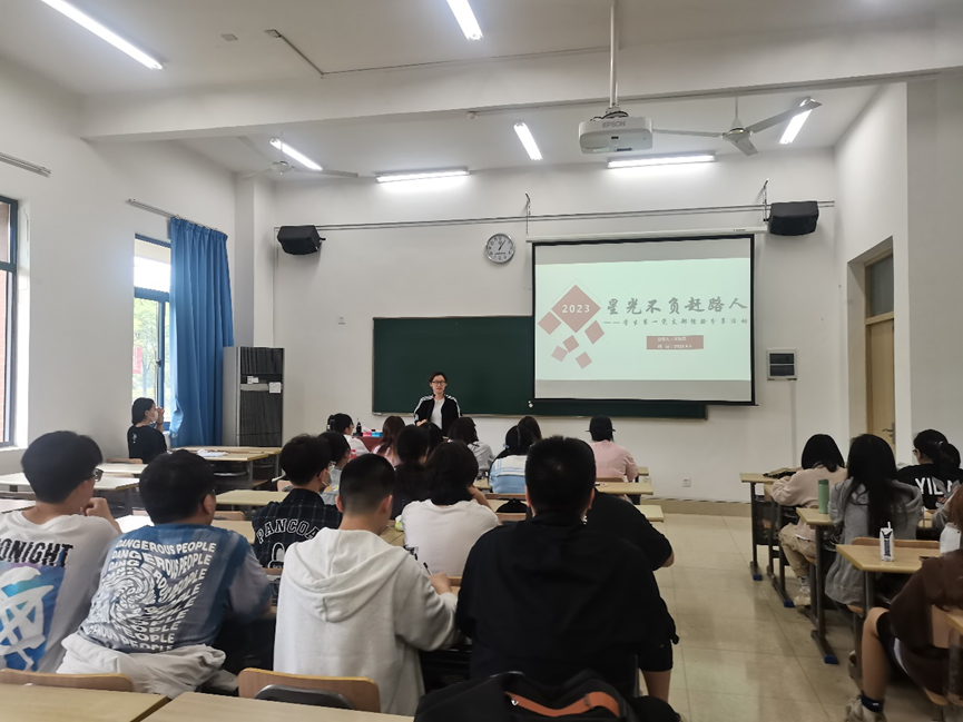 专升本考试是一场考试,更是人生中一次自我突破和蜕变的过程。支部宋如意同志担任20精密医疗器械高职班班长,荷之韵积极心理工作会长。她一边扎实学习,一边辛勤服务,在与自我赛跑中积极成长,书写人生青春华章。她以自身为示范,为同学们深动讲述”星光从不负赶路人“的故事,受到了学弟学妹们的热烈欢迎。