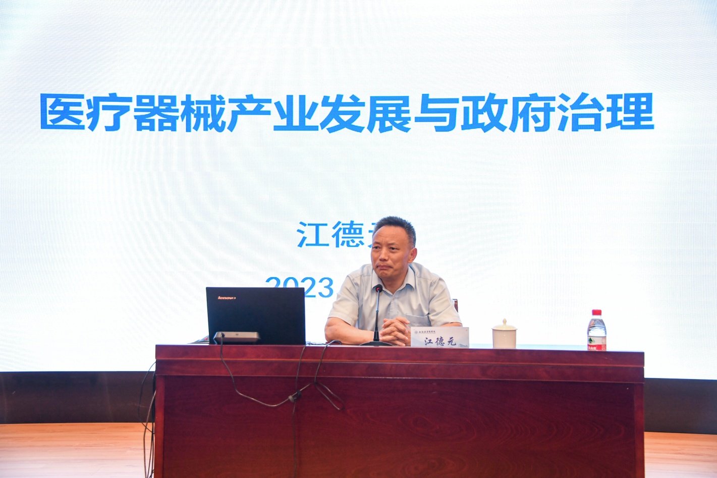 国家药监局医疗器械注册管理司原司长、中国医疗器械行业协会高级顾问江德元围绕医疗器械产业发展概况、医疗器械创新发展趋势和医疗器械监管政策概况等做“医疗器械产业发展与政府治理”报告,重点从强化产业创新发展法制保障、深化审评审批制度改革、筑牢产业创新发展监管基础和强化上市后监管保障用械安全四个方面介绍了医疗器械监管的使命、四个最严、三大理念、四个道路、五大主题等基本理念,通过制度创新、服务创新、监管创新,助推医疗器械产业高质量发展。