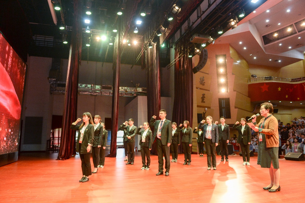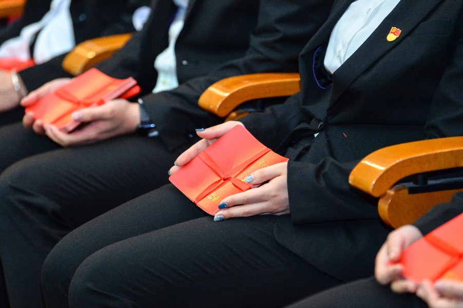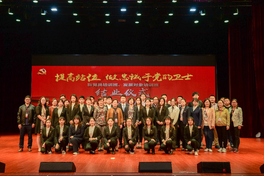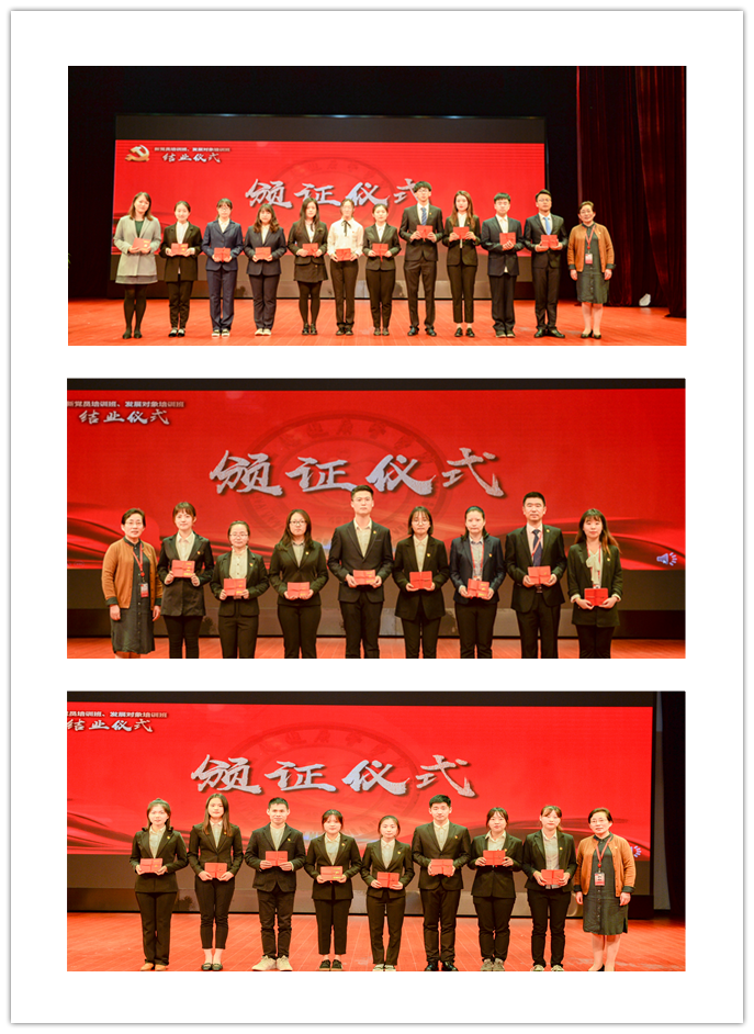 结业仪式首先以短片形式回顾了两期培训班的情况,郭戎静对两个培训班的开展情况作了总结。新党员们在郑沈芳书记的带领下,面向鲜红的党旗紧握右拳,以饱满的热情、高昂的声音进行宣誓仪式,重温了自己对党的一份承诺和责任。