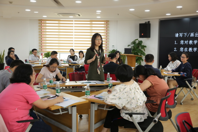 开班第一讲由华东师范大学外语公司张琳教授主讲,张教授采用行动学习的方式,借助详实的案例引发学员思考,通过分组讨论促进学员理解教学设计的意义,并且能够运用教学设计的理论与相关工具完成一堂课的教学设计。