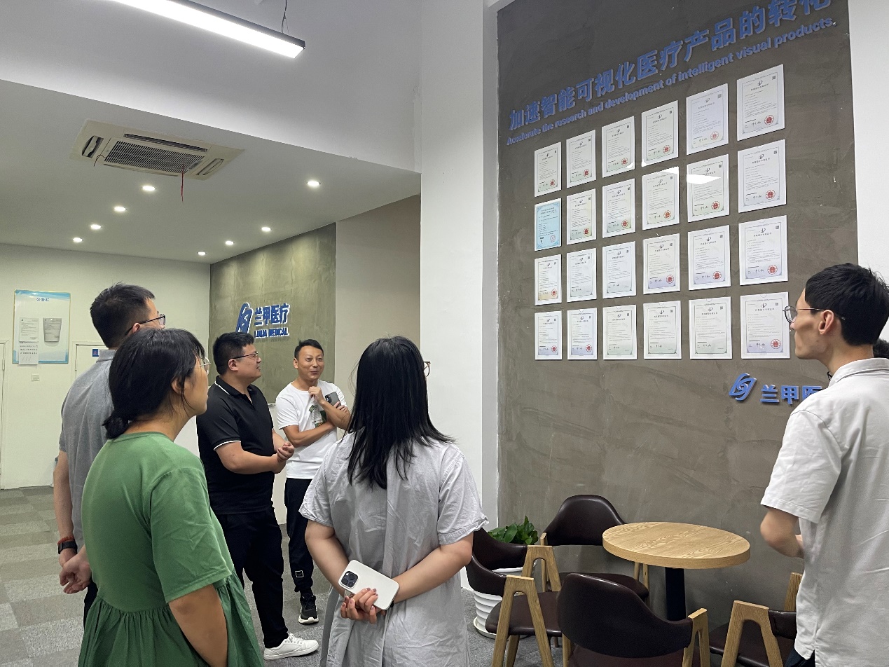 7月25日,伟德bv国际体育智能医疗器械与主动健康协同创新团队成员林祥德、程静、赵晖、于仪、刘宇博一行访问了上海兰甲医疗科技有限公司进行项目研究合作交流。首先,公司研发部工程师为来访老师介绍了公司在成立两年来的产品研发重心以及与智能可视化气道管理产品相关的样机、专利和注册证等方面的技术积累,并围绕产品中的临床需求、瓶颈问题、市场情况、耗材元器件加工、产品技术难题、智能化解决方案等方面进行了热烈讨论。然后,公司负责人王总整体介绍了公司目前的主要经营业务以及未来公司的医疗产品布局,从两年前的从无到有,到目前具备较完善的产品研发主线、研发团队及实验场地,已初步具备自主研发品牌和知识产权储备。交流过程中强调,高值医用耗材具有大量的临床需求,附加值较高,并且过往由低质量医用耗材引发了一系列的临床风险问题,基于伟德bv国际体育目前已具备完善的实验室条件和生物医用材料方面的研究基础和经验,希望与伟德bv国际体育师生一道加强产教协同合作,结合公司目前在临床医疗产品方面的技术积累,预期在特定临床领域的高值医用耗材方向可实现一定的产品突破和布局,助力实现国产化替代。