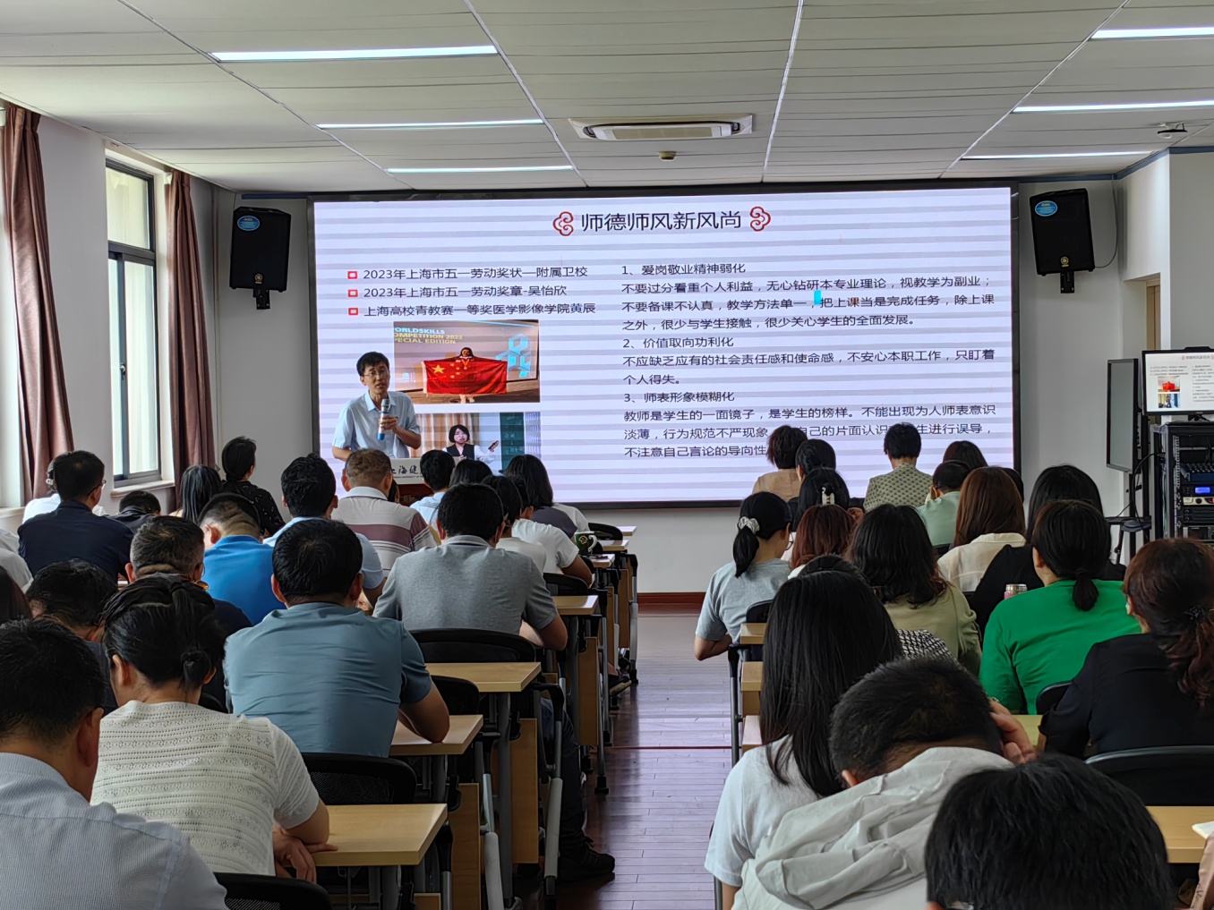 最后,李晓欧号召公司教师向2023年上海市五一劳动奖章吴怡欣和上海高校青教赛一等奖医学影像公司黄辰学习,不断涵养高尚师德,刻苦钻研、严谨笃学,勇于创新、奋发进取,静心教书、潜心育人,努力成为有理想信念、有道德情操、有扎实学识、有仁爱之心的好教师。