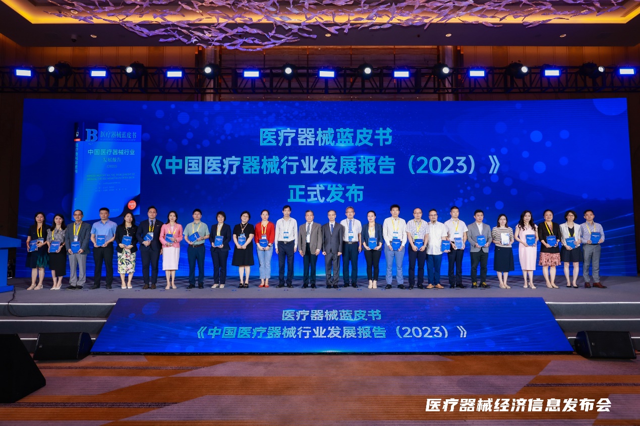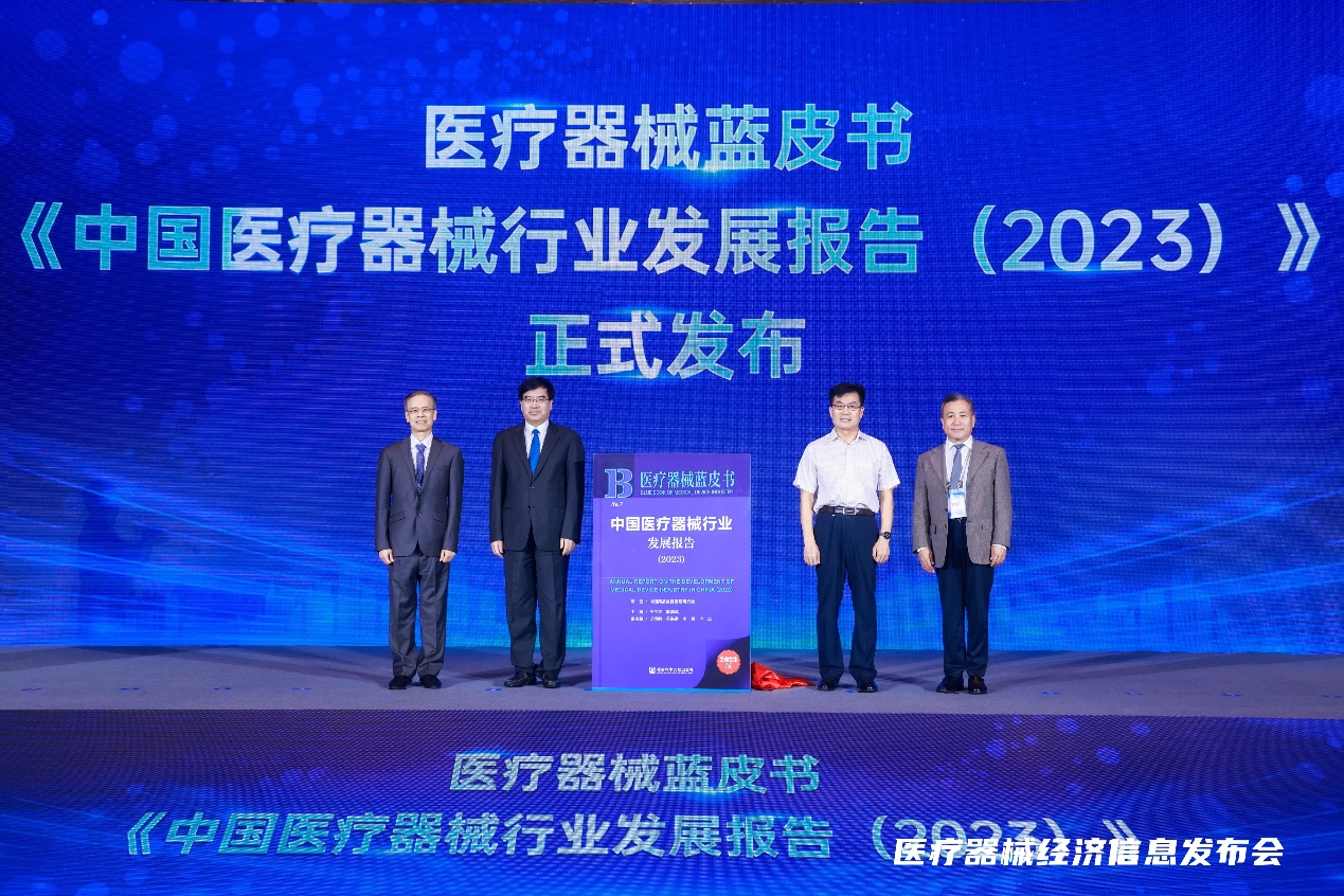 2023年9月25日,公司伟德bv国际体育蒋海洪副教授参与主编的《医疗器械蓝皮书:中国医疗器械行业发展报告(2023)》在国家药品监督管理局南方医药经济研究所主办的“2023医疗器械经济信息发布会”上正式发布。发布会现场,国家药品监督管理局徐景和副局长、社会科学文献出版社冀祥德社长、中国药品监督管理研究会王宝亭副会长、国家药品监督管理局南方医药经济研究所卢忠所长一起为2023年版中国医疗器械蓝皮书揭幕。蓝皮书主编王宝亭对《中国医疗器械行业发展报告(2023)》的编制过程作了主题分享。王宝亭、蒋海洪、李强和卢忠等四位主编为相关企业赠送了最新版的医疗器械蓝皮书。