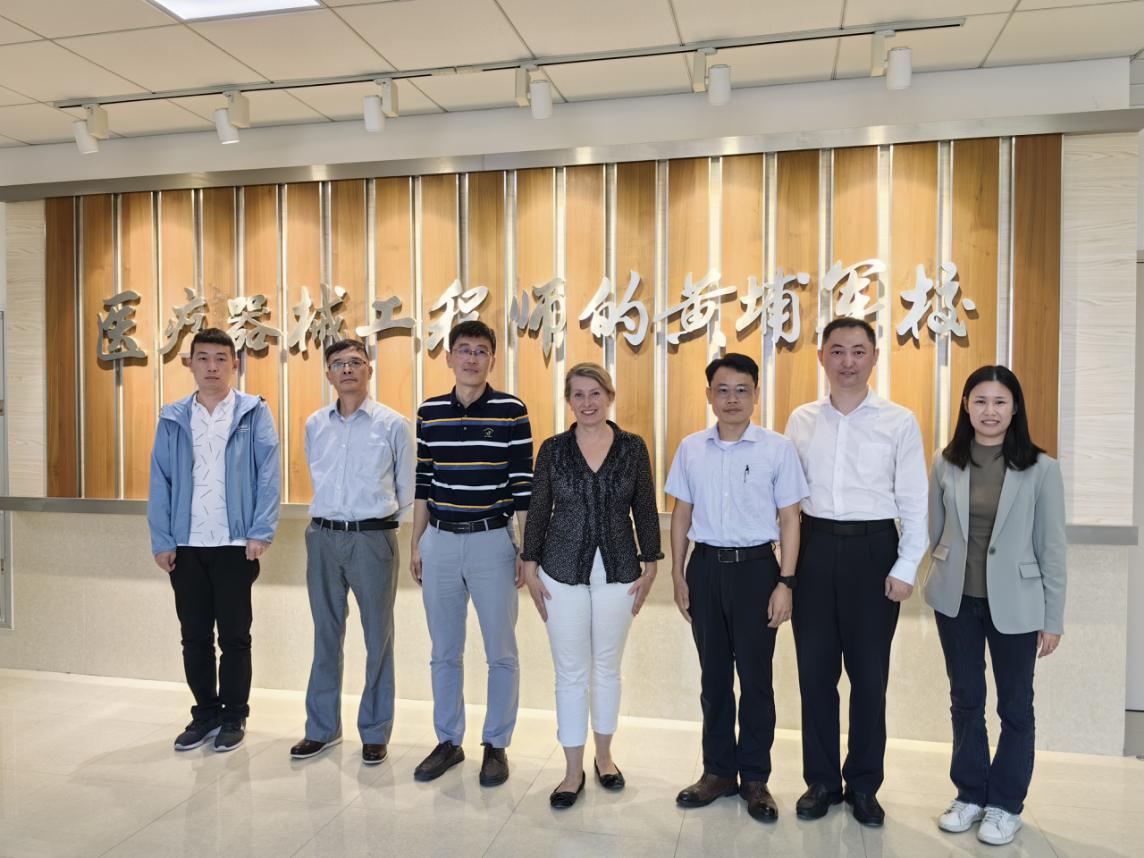10月30日下午1点,索诺瓦(Sonova)亚太集团教育培训总监Bettina Turnbull女士、索诺瓦卓越听力中心培训总监杨欣怡女士(在线)、顾问陈红女士及长三角医疗器械产业发展促进会副会长袁炜先生来学院洽谈人才合作培养工作。索诺瓦集团本部位于瑞士,旗下助听器产品市场份额常年占据全球第一。此次合作是由长三角医疗器械产业发展促进会牵头组织,杨晖经理、李晓欧书记为此项合作洽谈专门组成专业团队,共同接待到访来宾。