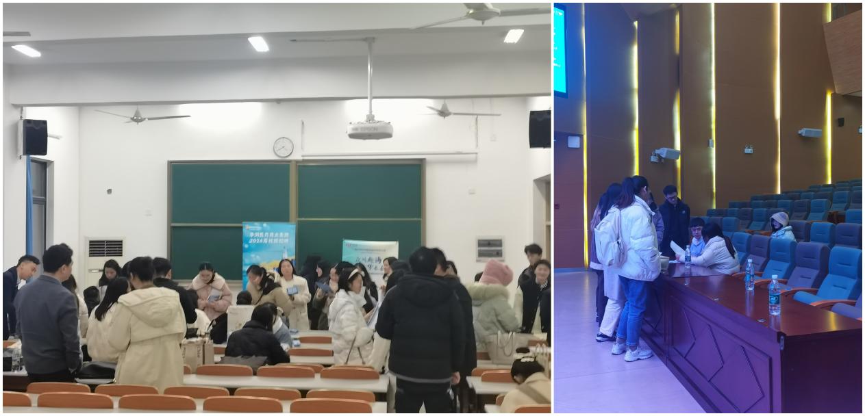 第三部分是现场面试。会议结束后,企业招聘负责人移步东苑教学楼北楼105教室,现场进行面试,参加面试同学带着简历,准备充分,积极主动与招聘单位进行交流,最终有十余人现场签约。