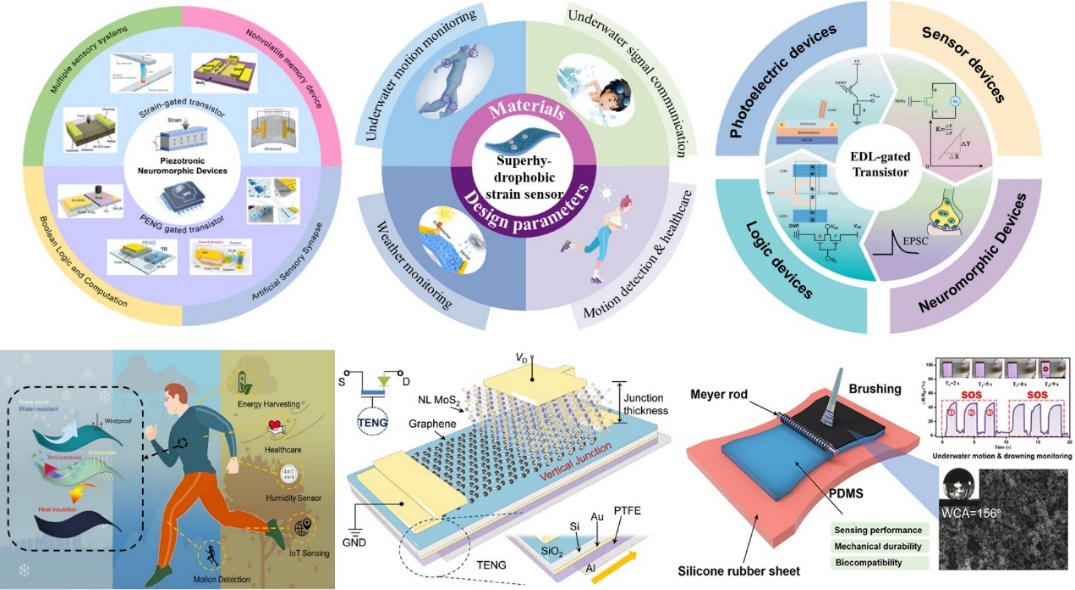 林祥德老师充分利用寒假时间,聚焦智能医学传感和柔性电子器件研究领域,重点对前期工作进行系统总结,致力于夯实研究基础,进一步凝练工程问题和科学规律。自2024年以来,林祥德老师在智能感知、自供电柔性传感、神经形态器件等方向研究上逐渐开花结果,其中,以第一作者在International Journal of Extreme Manufacturing(IF 14.7)期刊发表成果,对压电神经形态器件(传统概念压电器件、应变门控压电晶体管和压电纳米发电机门控场效应晶体管)的研究进展进行了全面评述,对医学传感、信息存储、逻辑计算、人工突触、穿戴器械等发展具有重要价值。另外,以通讯作者在ACS Applied Materials & Interfaces(IF 9.5)期刊发表研究成果,首次通过机械简易刷涂技术实现了高耐用性和生物相容性的柔性应变传感器可控制备,并在恶劣环境下的运动传感和溺水预警系统上成功应用。并基于此,与团队负责人杨晖教授(通讯作者)合作,以共同第一作者在Advanced Materials Technologies(IF 6.8)期刊发表了关于柔性应变传感器和光电检测的研究综述,以进一步拓展其智能医疗和主动健康应用场景。此外,还以共同第一作者与中国科公司北京纳米能源与系统研究所合作,在Advanced Functional Materials(IF 19)和Nano Energy(IF 17.6)期刊发表了关于基于压电/摩擦电的高性能自供电传感器件的研究工作。希望能与校内外老师继续加强合作,在智能科学与技术团队建设上贡献绵薄之力。