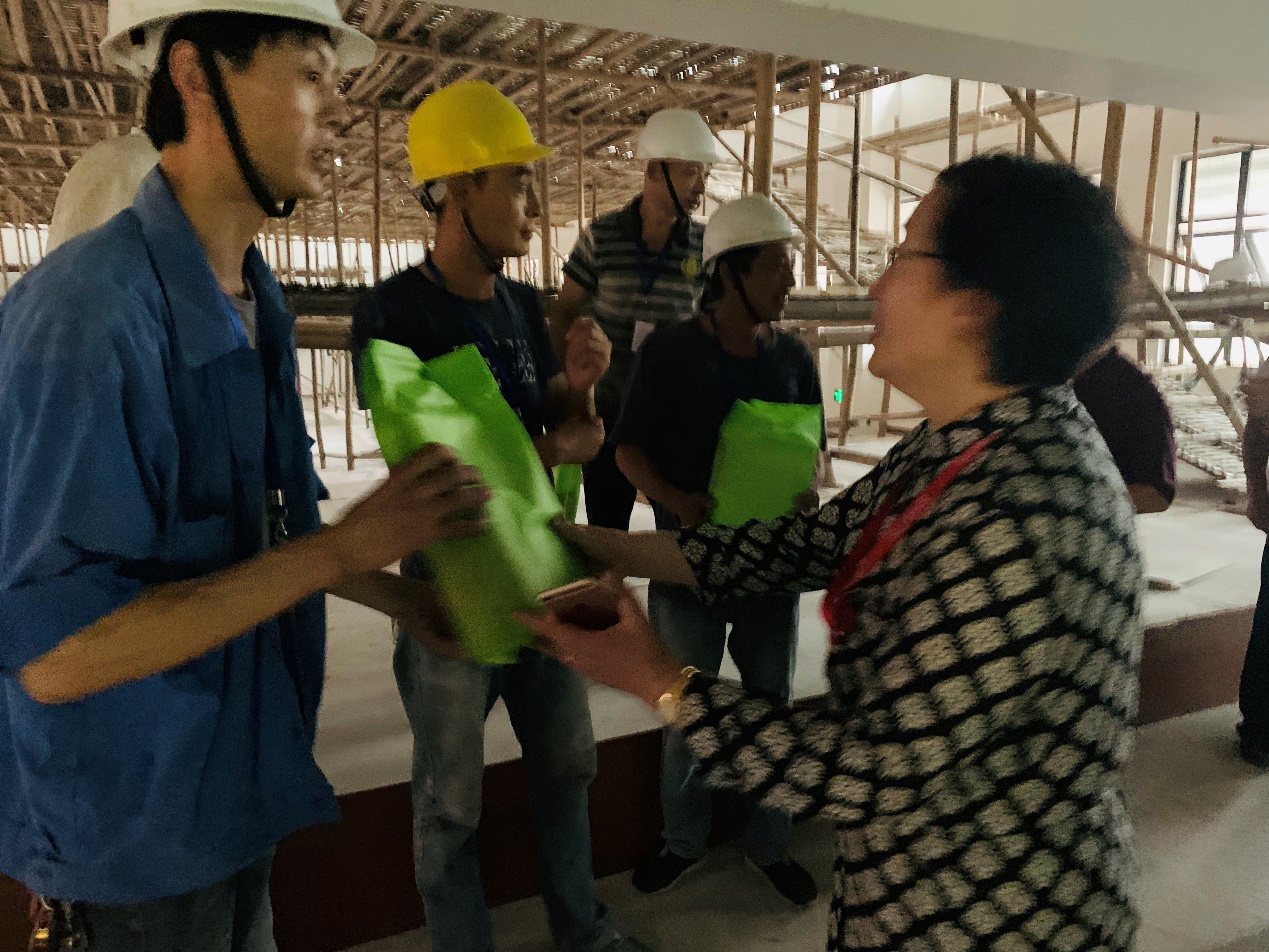 北苑、南苑、新南苑的门岗、食堂、物业保洁人员和基建工地工作人员等,校领导们也都一一为他们送上清凉慰问品,并且嘱咐大家在确保安全的前提下,合理安排工作,保证大家身体健康,多喝水注意防暑,同时也感谢大家为了校园内基础建设工作的正常开展,为了新学期的新面貌、保障校园内的安全等工作付出了辛勤劳动,为公司的建设和发展做出的贡献表示亲切的慰问。
