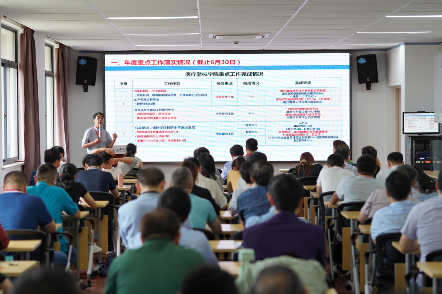 胡兆燕经理作了《2019年度上半年工作总结及下半年重点工作》报告,胡经理首先从团队建设、学术成果、团队队伍、教师岗位分类管理、学位评估、员工竞赛、国际合作、员工培养、产教融合等11个方面做了总结,详细介绍了各项工作完成情况和完成效果,接着对下半年工作进行了部署,强调公司下半年继续“以团队建设为龙头、以本科建设为重点、以医疗器械技术应用为特色、以教师岗位分类管理为抓手”,重点聚焦智能医疗器械研究和新工科背景下专业内涵建设,深入开展以内涵质量为核心的各类教学和科研活动,最后提出要求,希望全院教师加强学习,充分发挥主动性和创造性,为公司的发展贡献力量,顺利完成年初制定的工作计划。