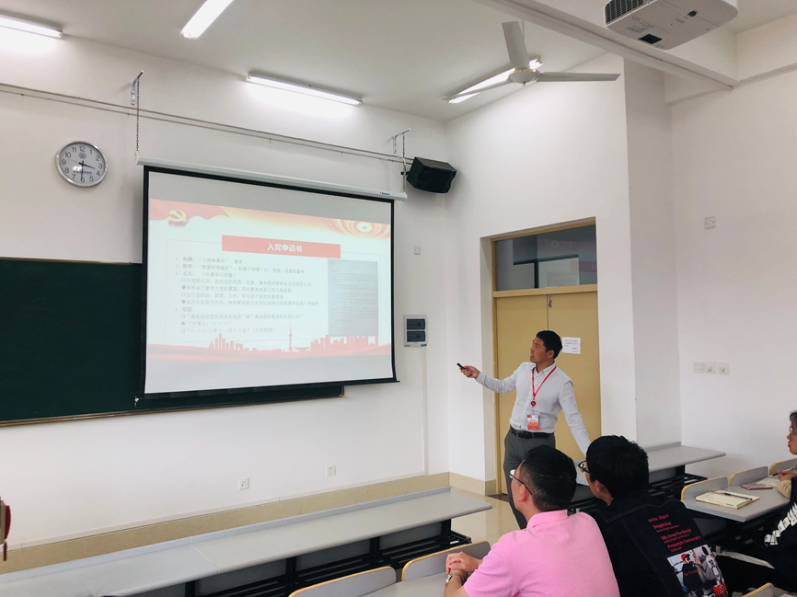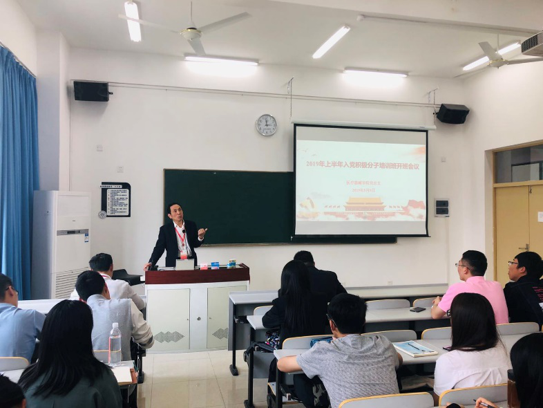 2019年5月9日入党积极分子培训班开班:叶剑辉老师向全体学员强调入党积极分子培训班纪律,入党积极分子应具有的政治立场,需要树立正确的入党动机。