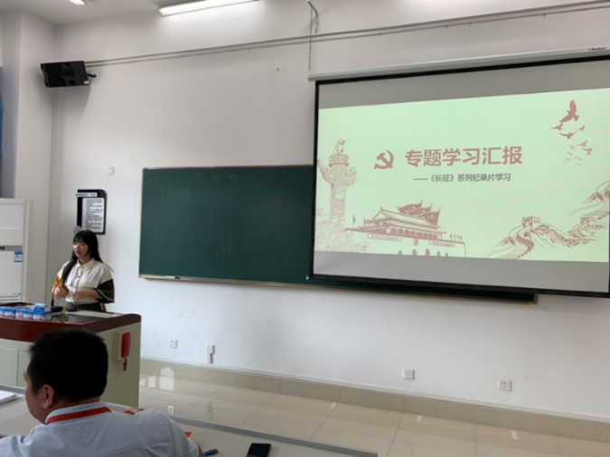 接着,原亮老师主持开展了“理论学习:专题学习汇报”活动。第一组以王燕、王长燕为代表汇报了长征专题,主要讲的是湘江战役。在第五天红军34师被敌人重重围住,师长陈树湘腹部受伤被敌人俘虏,当陈树湘醒来时从伤口中掏出肠子扯断当场牺牲,红34师五千多将士血洒疆场。第二组以蔡海瑞为代表汇报了习近平新时代中国特色社会主义思想专题。该小组从形成过程、核心内容、学习心得和总结三个方面进行汇报。每一位成员都汇报了自己的学习小结,都一致表明学习习近平新时代中国特色社会主义思想以后受益匪浅。习近平新时代中国特色社会主义思想已经写入党章,载入宪法,是党和国家必须长期坚持的指导思想。第三组以季张源为代表汇报了长征专题,主要汇报了整个长征过程。长征的目的是为躲避国民党的围剿,保存中共红军实力;又较为详细的给我们介绍了四渡赤水、巧渡金沙江、强渡大渡河、飞夺泸定桥等精彩战役。最后总结长征的意义在于北上抗日做革命宣传,保存并发展自己。