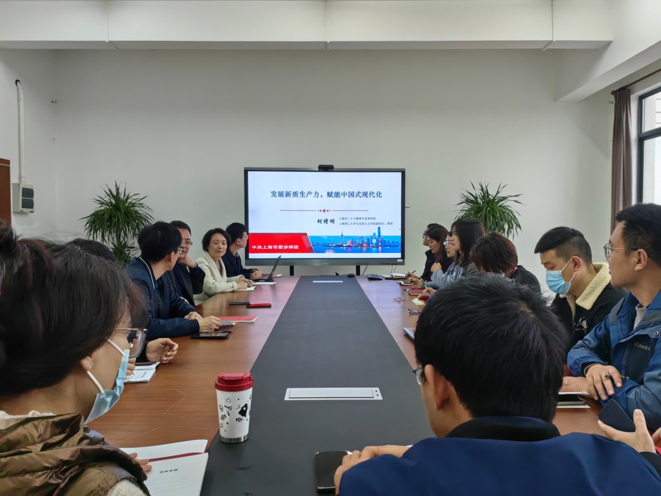 3月28日上午,医疗器械公司党总支中心组理论学习会在南苑18号楼506室举行,上海市委讲师团成员、上海市教卫系统二十大精神专家宣讲团成员、上海理工大学马克思主义公司副经理胡绪明教授受邀以“发展新质生产力,赋能中国式现代化”为主题作辅导报告,公司中心组成员参加学习,公司党总支李晓欧书记主持会议。