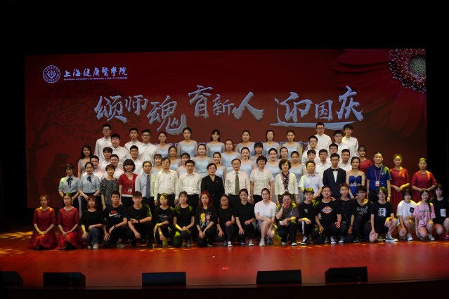 在颂师魂篇章中,褚小菊、张捷等老师带来的诗朗诵《爱岗敬业不忘初心》,昭示了公司广大教师牢记初心,埋头苦干,无私奉献的信念与决心。陈翼寅李雪菲等同学在饱含真情的《9月赞歌》中,赞颂了公司教师扎根课堂、深埋书中、潜心耕耘的精神风貌。颜靖文、金美娜等同学的诗朗诵《感谢您,老师!》表达了广大学子对老师的感恩感激之情。全体校领导用铿锵有力、掷地有声的“上健医”的最响亮声音朗诵了《不忘初心、牢记使命,为健康和未来而奋斗》,这是公司抓住机遇,改革发展的宣言书,是我们“健康人”不忘初心、牢记使命,潜心培育新时代健康守门人的庄严承诺,引起了广大师生的共鸣,激发了广大师生砥砺奋进的斗志。