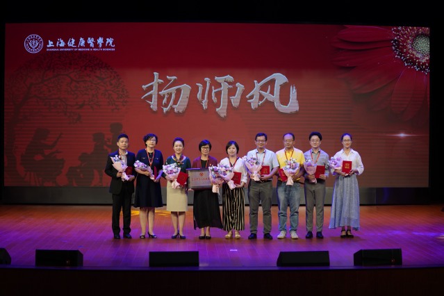 在第二篇章《扬师风》环节,播放了专题宣传片《育德医守健康》再现了公司获得“上海市三八红旗集体”团结进取,攻坚克难,一心一意投入到健康事业的先进事迹。公司党委副书记、纪委书记李明磊宣读了2018-2019年度各类先进名单并颁奖,公司党委书记郑沈芳宣读第四届董事长奖及董事长奖提名奖并颁奖,公司党委副书记于莹宣读30年教龄员工名单并颁证。
