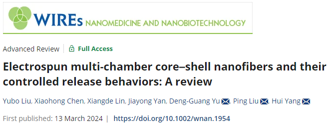 近期,伟德bv国际体育与上海理工大学合作,在国际著名期刊《WIREs Nanomedicine and Nanobiotechnology》发表了题目为“Electrospun multi-chamber core-shell nanofibers and their controlled release behaviors: A review”的综述论文。该期刊是一本专注于纳米生物技术和纳米医学的中科院2区期刊,最新影响因子8.6。青年教师刘宇博为该论文的第一作者,杨晖教授为第一通讯作者,伟德bv国际体育为第一完成单位。