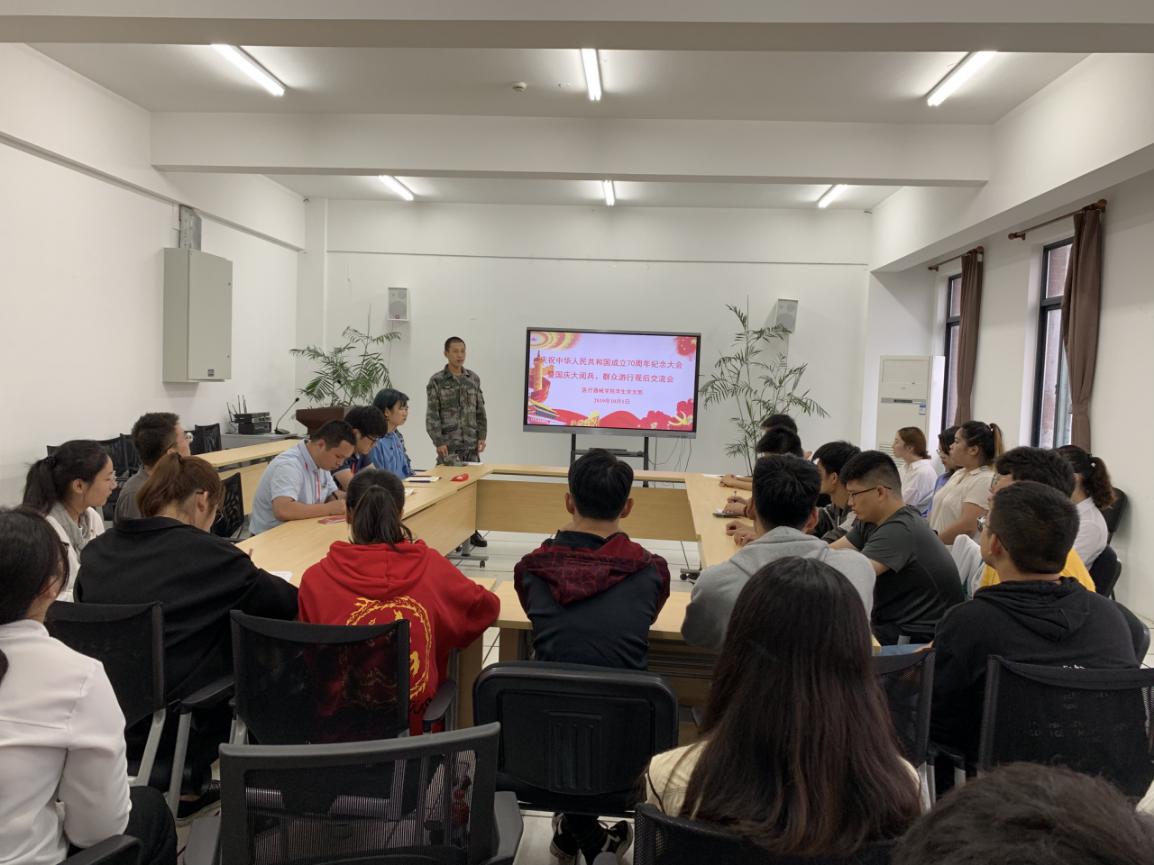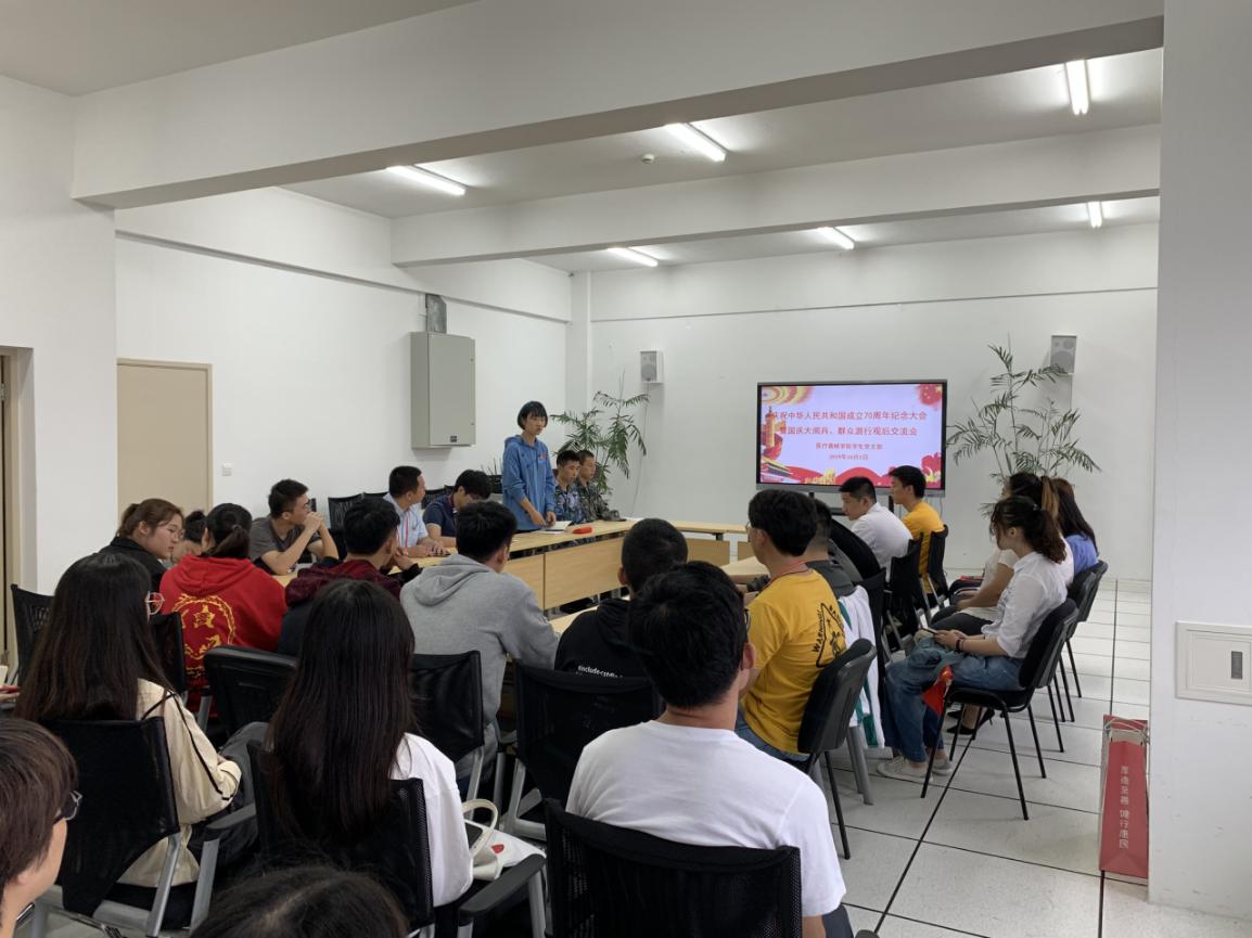 交流会上,刚观看完阅兵式和群众游行的党员同志们心情都非常激动,为伟大祖国和人民军队而感到无比自豪。吕杰老师带头进行交流发言,他对于早上在南苑举行的升旗仪式、礼仪队入场等场景记忆犹新,转而观看大阅兵直播更为震撼,他提醒同学要时刻不忘伟大的中国共产党和祖国对青年员工的殷切期望,要只争朝夕,奋勇拼搏,报效祖国。叶剑辉老师谈到了早上收看直播最激动的时候是,当听到习近平总书记在纪念大会上的讲话中提到:“伟大的中华人民共和国万岁、伟大的中国共产党万岁、伟大的中国人民万岁”,深感伟大的党和伟大祖国的豪迈气势和伟大人民的英雄气概。