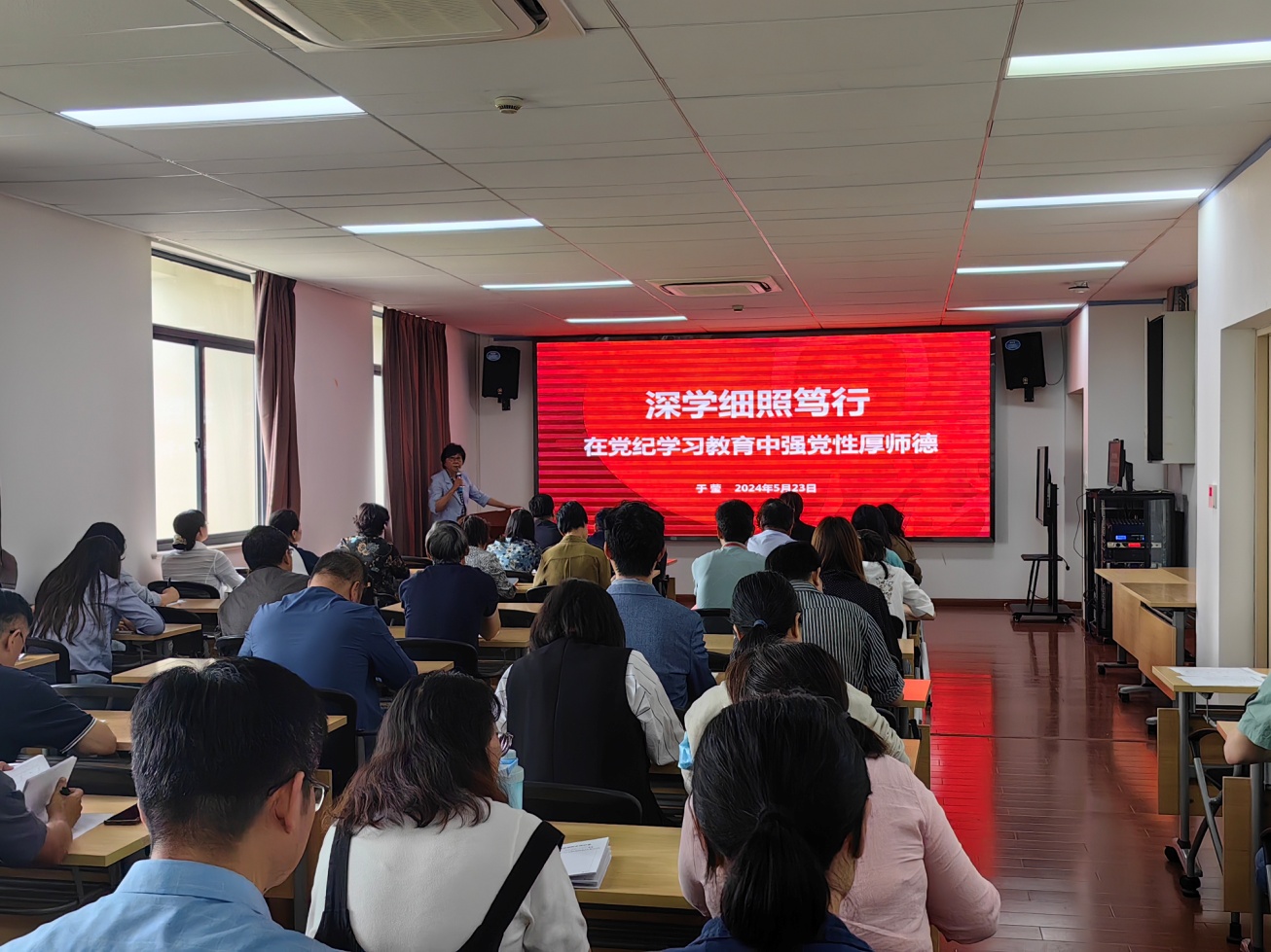 为进一步扎实推进党纪学习教育,努力提升党纪学习教育实效,5月23日下午,公司党委于莹副书记以“深学细照笃行,在党纪学习教育中强党性厚师德”为主题在南苑18号楼410室从目标指向、价值意蕴和实践要求等三个方面给医疗器械公司党总支、康复公司党总支、机关党校办党支部和离退休工作党支部全体党员上了一堂精心准备的党课。