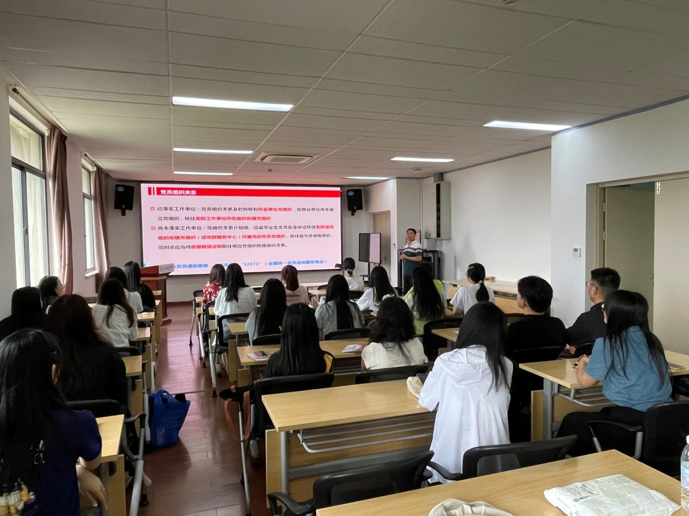 首先,原老师从荣誉、责任、担当和信仰四个方面引导毕业生党员强化党员身份感,希望毕业生党员牢记党的宗旨和使命,始终保持对党的忠诚和对人民的热爱,敢于直面困难和挑战,勇于担当重任,积极解决问题,推动工作落实;接着,原老师引导毕业生党员重温入党誓词,希望毕业生党员严格要求自己,以党纪学习教育为契机,认真学习《中国共产党纪律处分条例》,做到学纪、知纪、明纪、守纪、知行合一,真正把党纪法规内化于心、外化于行,在新的工作或学习岗位上展现上健医学子的风采;最后,原老师围绕受教育、记时间、励斗志等引导毕业生党员了解党员组织关系转接流程和注意事项,牢记自己的入党时间、取得党籍时间和党龄,希望员工主动积极融入新的党组织,时刻牢记党员身份,主动担当作为,认真做事、踏实做人,在工作实践的淬炼中实现自己的人生价值。