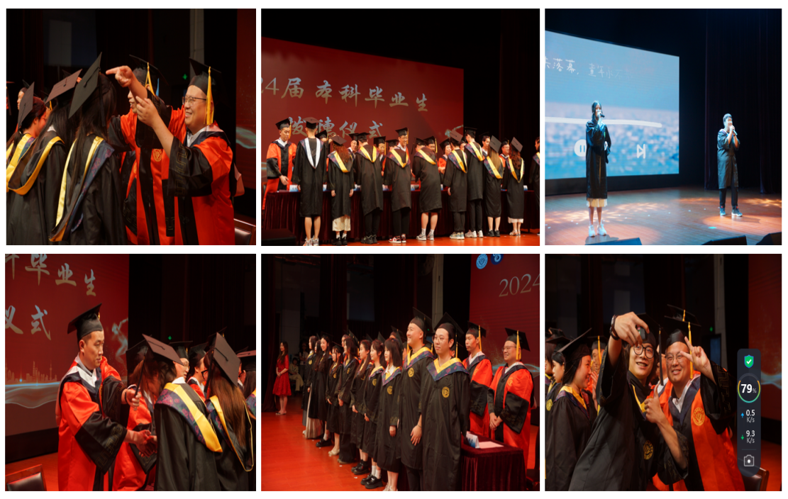 典礼开始前,师生齐聚一堂,观看2024届毕业生们丰富多彩的校园活动剪影,共同回忆在伟德bv国际体育求员工活的奋斗足迹,同学们被短片中的一幕幕场景所感动,他们和朋友拥抱、拍照,留下青春的注脚。随后,在庄严的国歌声中,2024届员工毕业典礼暨学位授予仪式正式拉开帷幕。