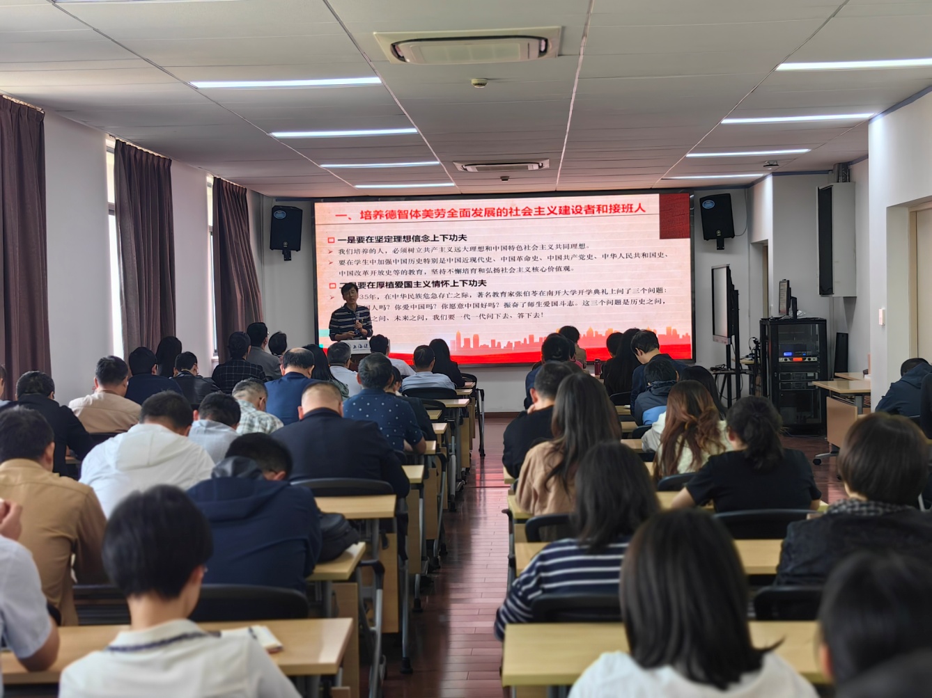 最后,李晓欧以习近平总书记发表在《求是》(2024年9月1日第17期)杂志的文章《培养德智体美劳全面发展的社会主义建设者和接班人》中的要求“在坚定理想信念上下功夫、在厚植爱国主义情怀上下功夫、在加强品德修养上下功夫、在增长知识见识上下功夫、在培养奋斗精神上下功夫、在增强综合素质上下功夫”与参会老师共勉,切实担负好新时代为党育人、为国育才的初心使命。