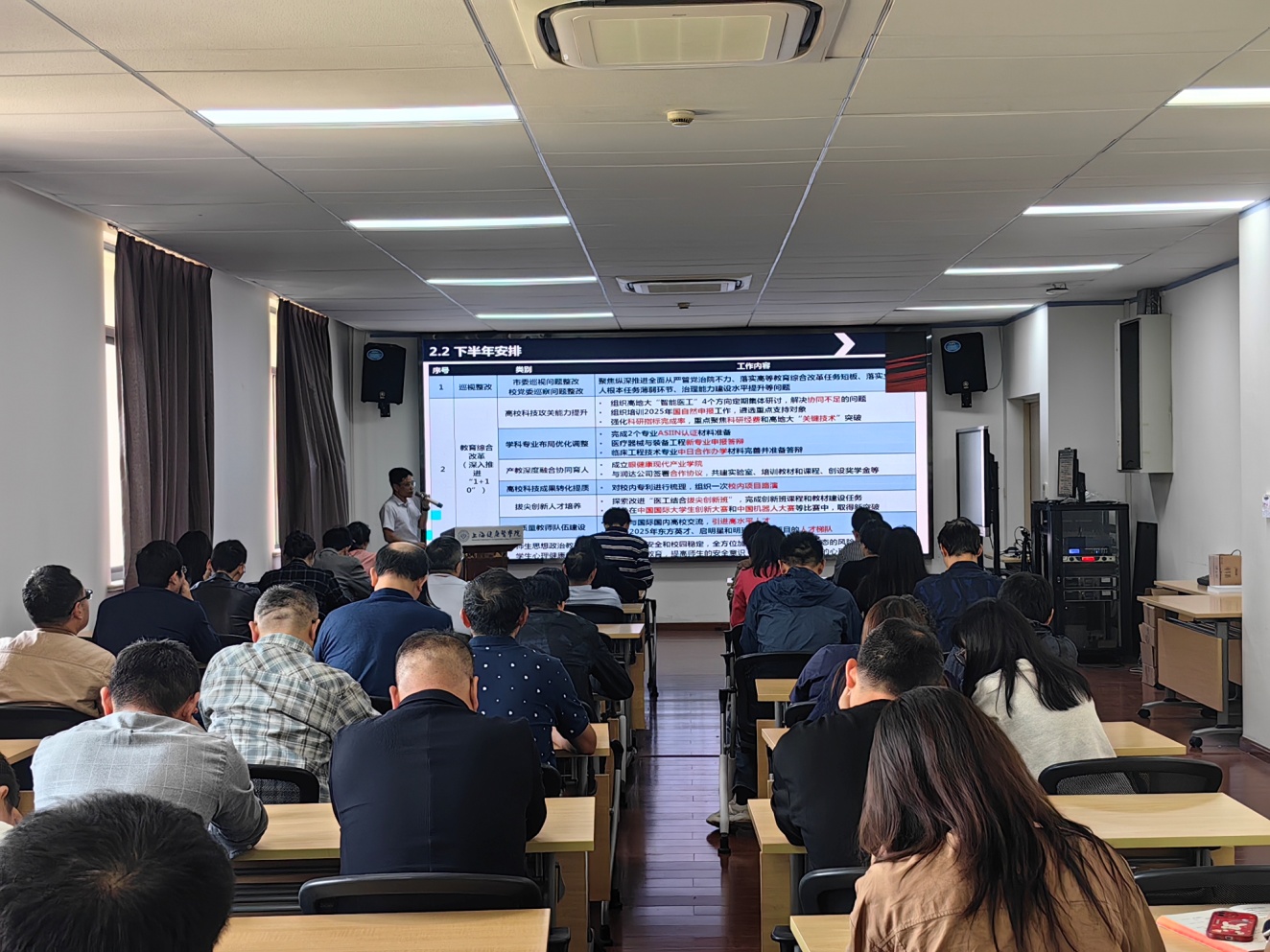 10月10日下午,伟德bv国际体育在新南苑18号楼410室召开新学期全院教师大会,公司全体教师参加了此次会议,经理杨晖进行了上半年工作汇报和下半年工作安排。