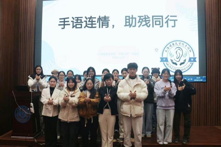 为加深师生对特殊群体的关心与关注,11月28日下午3:00伟德bv国际体育在南苑E100报告厅顺利举行“手语连情 助残同行”科普活动。本次活动由校级资助育人项目“‘手’护健康,悦见心声”团队统筹组织,携手校“手舞心声”手语社、大艺团及show炫麦社共同开展,吸引近200名在校生参与。医疗器械公司党总支副书记杨美和资助育人项目指导教师孙吉敏出席本次活动。