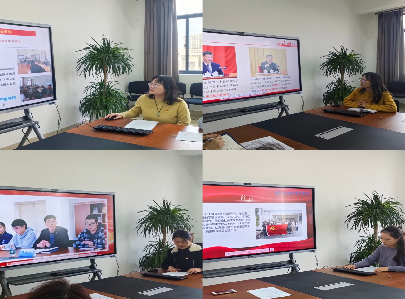 述职评议会上,聚焦学习贯彻习近平新时代中国特色社会主义思想主题、落实基层党建工作重点任务、加强党员队伍建设、全面建强集约共享的党群服务阵地等主题,教工第二党支部书记刘巧红、教工第一党支部书记伍秀玭、员工第一党支部书记刘一丹、员工第二党支部书记荀琳依次分别进行党支部2024年党建工作汇报,四位党支部书记在总结本年度履职的基础上深入查摆问题,逐一对工作中的短板进行梳理并提出改进举措。