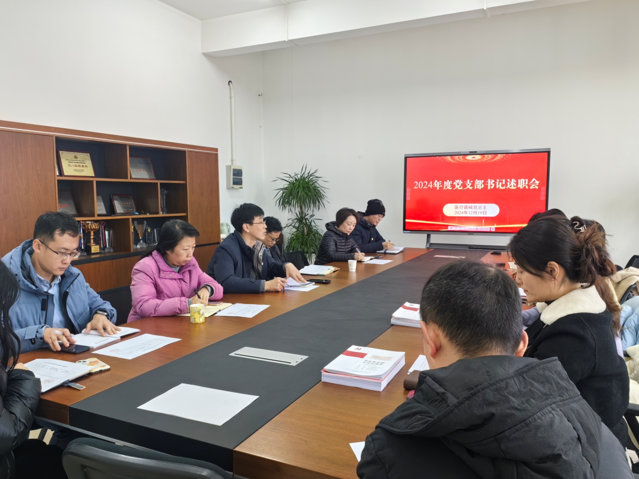 12月19日上午,医疗器械公司党总支在南苑18号楼506会议室召开2024年度党支部书记党建工作述职评议会,会议由公司党总支李晓欧书记主持,公司党总支委员、各党支部书记、教师党员代表、工会主席、特约监察员参加了此次述职评议会。
