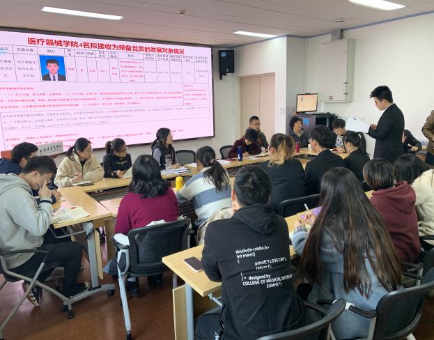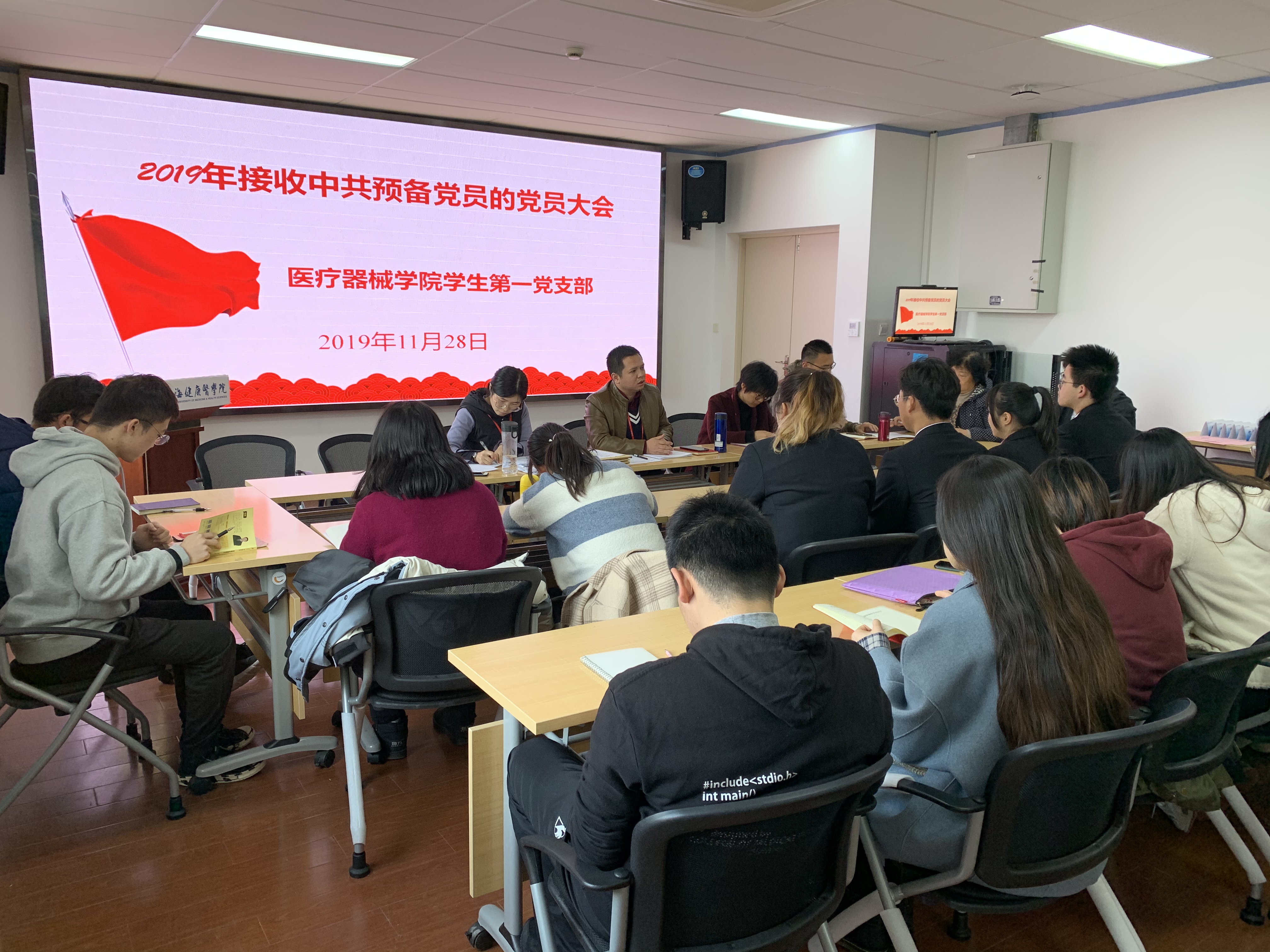 会议伊始,叶老师从思想情况、学习情况、工作情况、社会实践等方面对4位17级生物医学工程本科发展对象的培养考察情况进行了综合汇报。接收预备党员的审批流程正式开始,采取的是每位发展对象逐一讨论票决;首先是发展对象宣读入党志愿书,随后,依次由各位发展对象的入党介绍人对党员发展对象进行了全面的优缺点评价和表态,接着,支部其他党员也纷纷表示对每位发展对象入党的意见和期许,希望每位同学都应在以后的学习和生活中以党员的标准严格要求自己,改正自身不足。最后,到会的支部正式党员现场进行了票决,并由支部书记现场宣读支部决议。