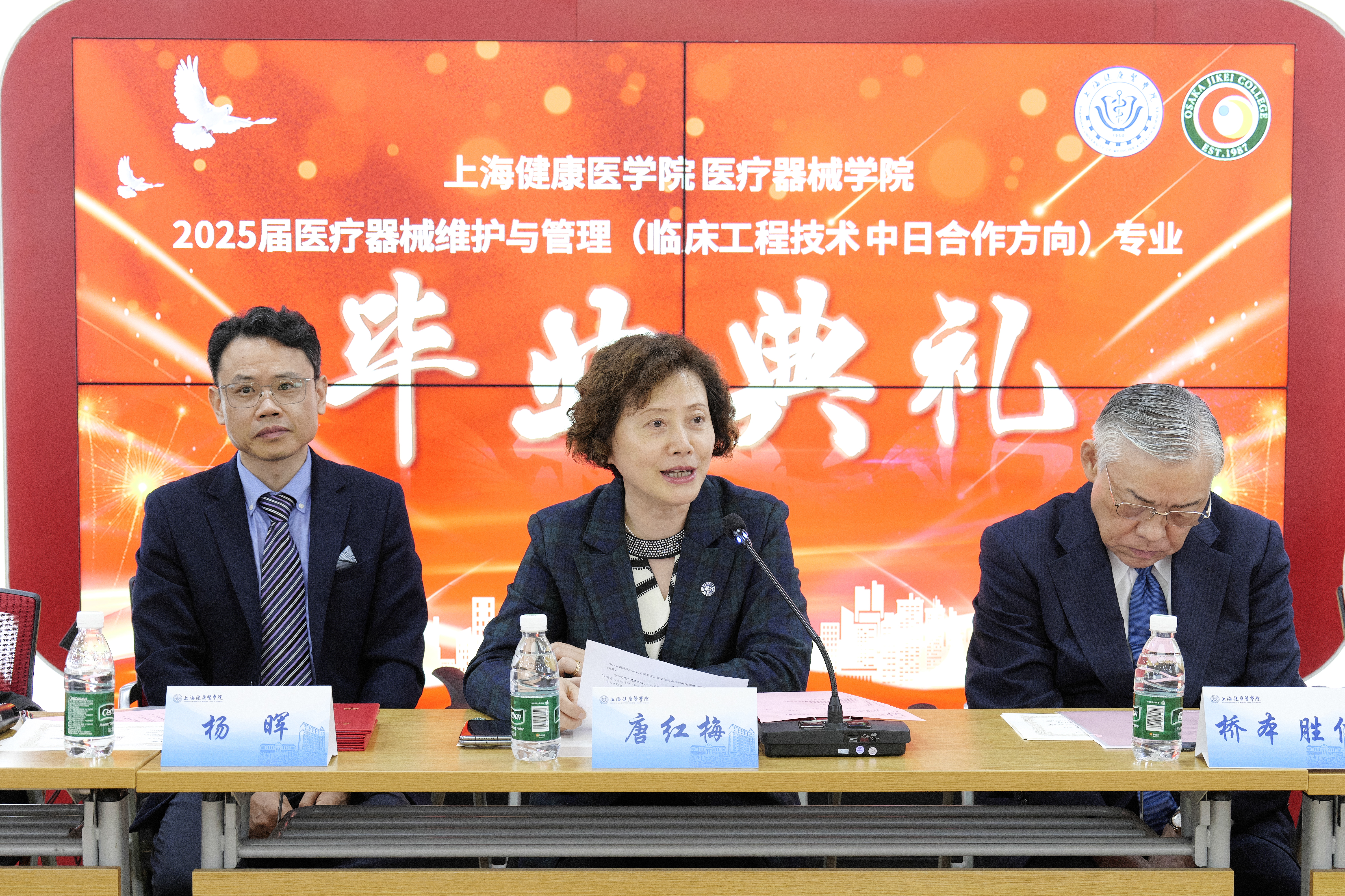 唐红梅在致辞中充分肯定了中日合作项目的育人成效,并鼓励同学们勇担使命,成为生命的守护者、创新的实践者和文化的传播者。