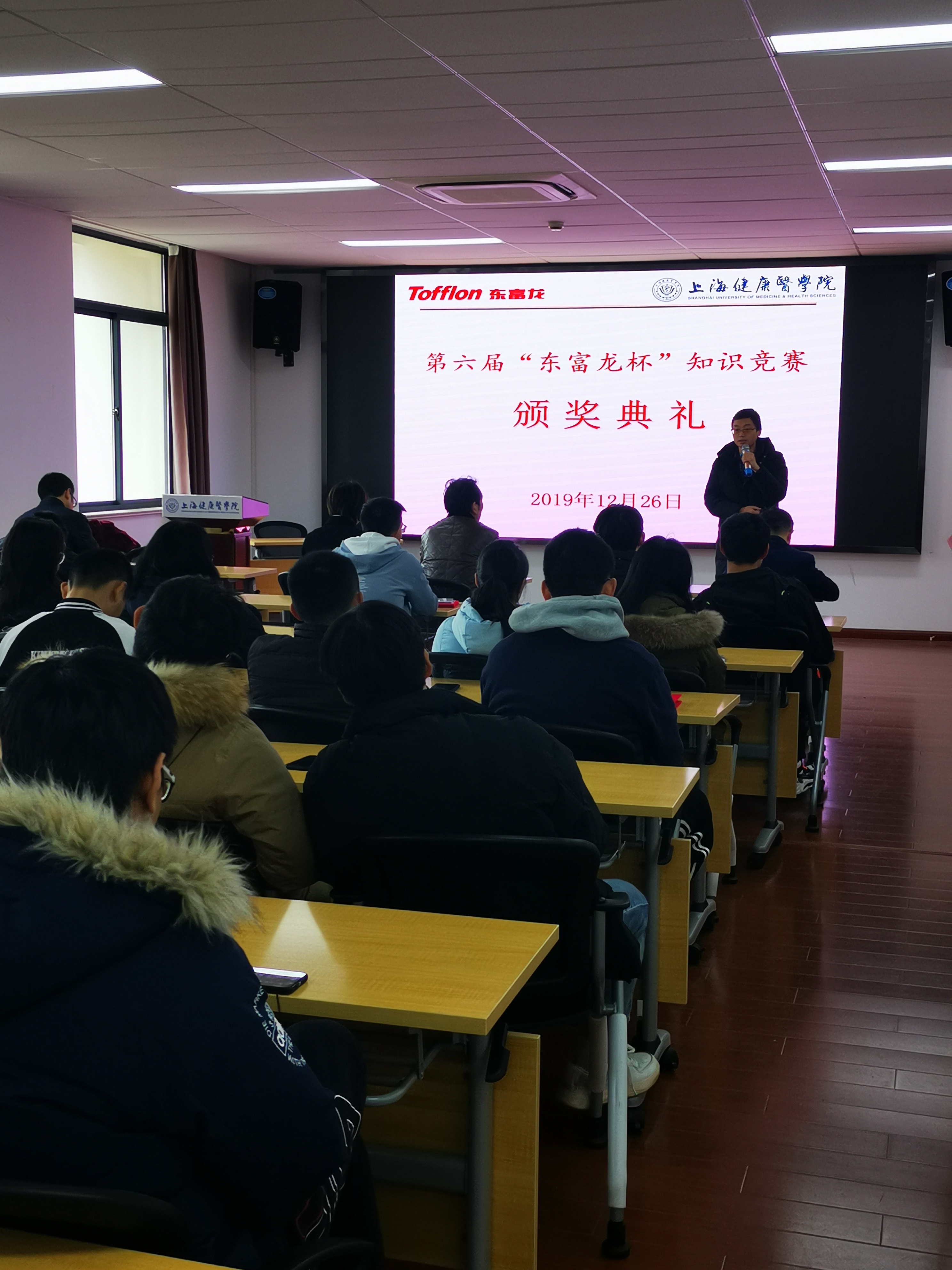 2019年12月26日, 第六届“东富龙杯”知识竞赛颁奖典礼在伟德bv国际体育410会议室举行。出席会议的有:上海东富龙科技股份有限公司人力资源部焦化雨经理和刘东升主管、伟德bv国际体育医疗器械公司党总支书记王云光、公司副经理孙丽萍、公司副书记吕杰。