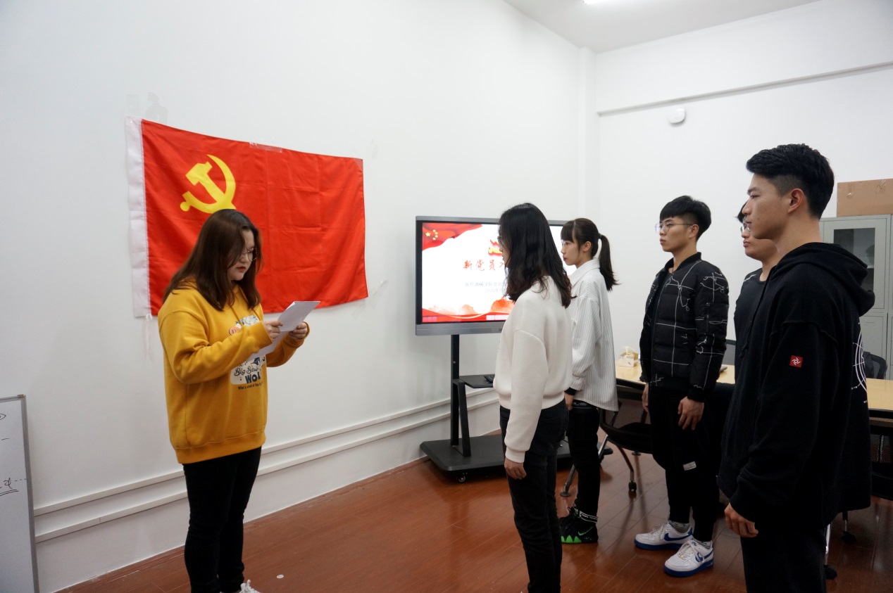 会议以奏唱国际歌拉开帷幕,接着王老师致辞,欢迎大家成为预备党员,也勉励大家不忘初心、牢记使命,争取早日成为一名优秀的共产党员,跟党的步伐,学习党组织精神和理论,提升自我修养。然后是预备党员郑重宣誓。
