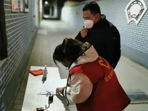 对每一个进出社区的人都进行详细的询问、测温和登记,严把进门和出门两道关卡,同时劝阻居民群众少出门。除了排查信息,她还帮助社区工作人员发放防疫明白纸和出入卡,协助社区工作人员进行防疫宣传工作。