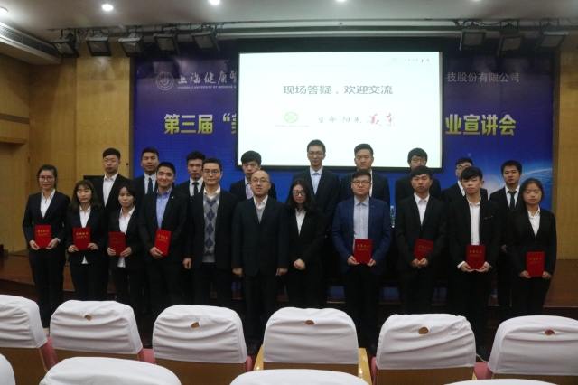 颁奖仪式结束后,美康生物科技股份有限公司进行了企业宣讲。招聘经理刘永祥相继介绍了美康的成长历史和未来的发展战略,以及员工的薪资待遇与发展前景,刘经理还结合自己进入企业以来成长的心得体会,倡导同学们摆正心态,做好职业规划,投入实践学习,早日成长为一名德才兼备的健康职业人。宣讲会在同学们的掌声中圆满结束。