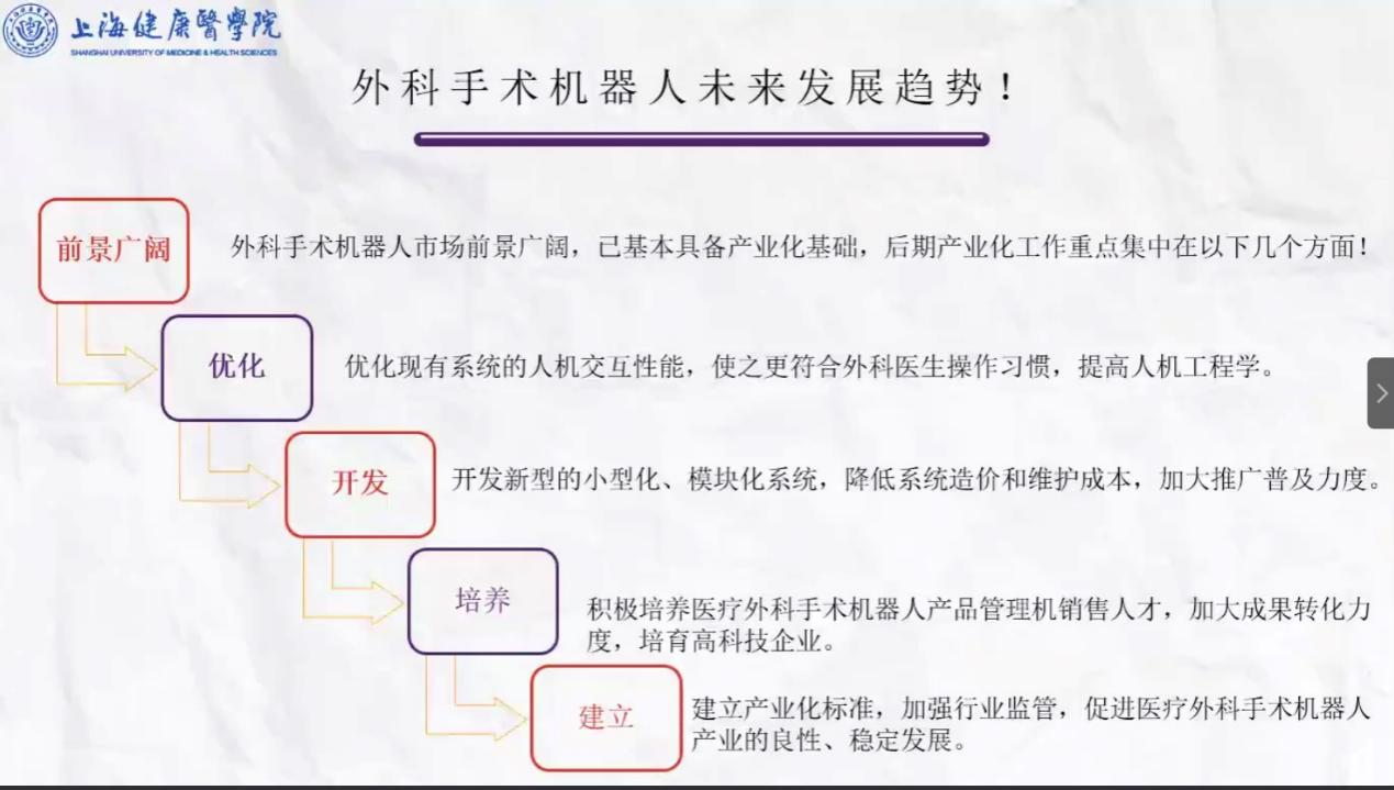 最后张博士鼓励想要做科研的同学们,潜心科研是提高毅力,升高眼力,抬高魅力的一种途径,自己在做手术机器人的课题研究过程中收获颇丰,曾指导的员工也曾发表学术论文,希望能激发起同学们对科研的热情。
