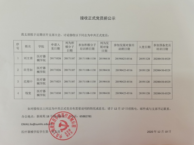 伟德bv国际体育员工第一党支部12月份接收正式党员前公示