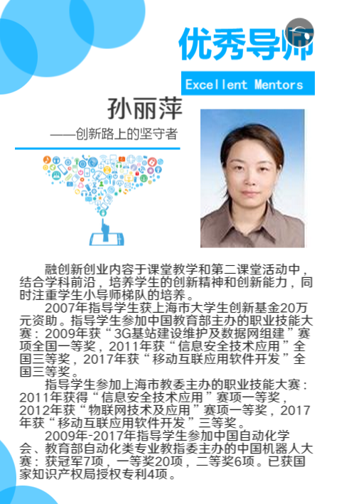 “新工科”人才培养的根本是培养员工的创新思维、创新能力和创业精神。信息支部的教师在人才培养中积极发挥了教育引导和指导帮扶的作用,注重员工的创新精神、创业意识和创新创业能力的培养,结合学科前沿,将创新创业内容融合于课堂教学和第二课堂活动中。由孙丽萍经理带领的信息支部教师团队指导的员工创新团队多次在中国机器人大赛上荣获冠军,各类全国职业院校技能竞赛中获取奖项。孙丽萍老师和李建华老师入选全国万名创新创业导师的殊荣。