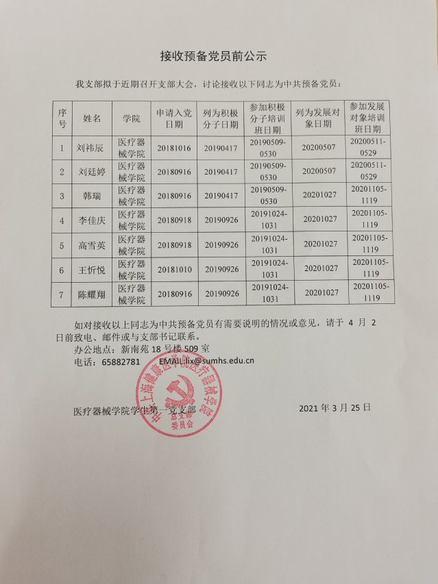 伟德bv国际体育员工第一党支部接收预备党员前公示