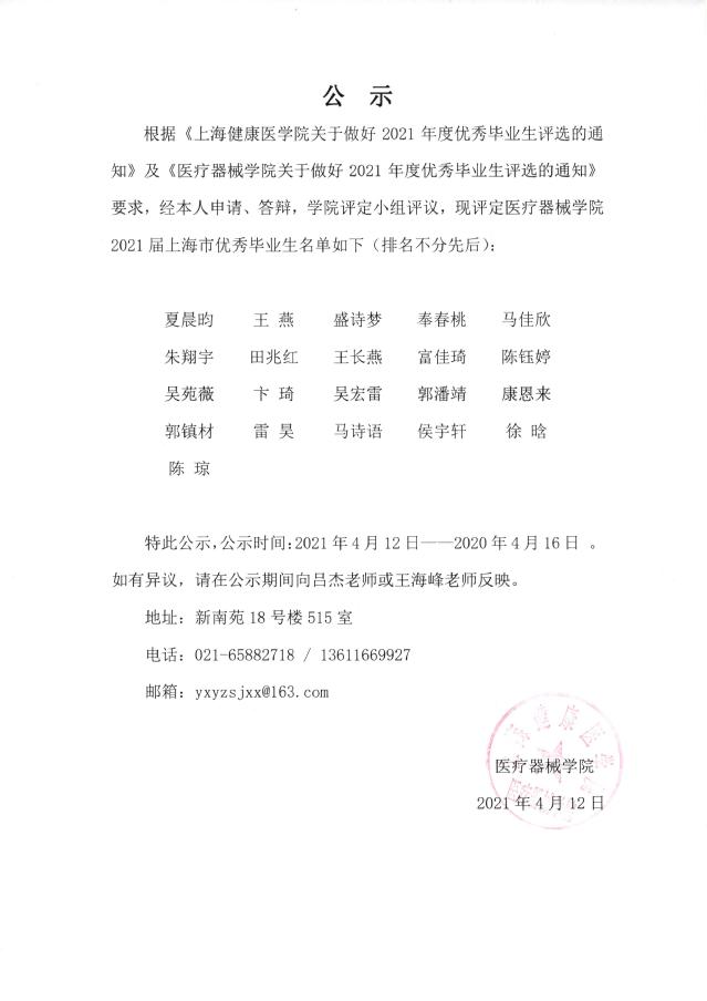 伟德bv国际体育2021届市级、校级优秀毕业生名单公示