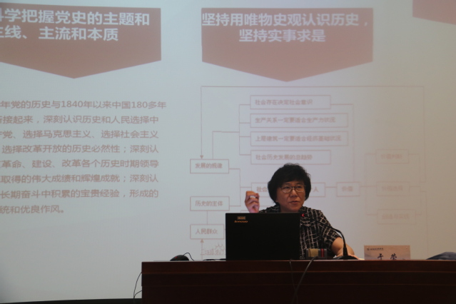 首先,于书记以习近平总书记生动形象的“妙喻”阐述开展党史学习教育重大意义为序,引出习近平总书记关于历史观的重要论述,使全体党员深刻认识到习近平总书记用唯物史观认识历史的鲜明立场和我们党一贯坚持的实事求是思想路线。接着,于书记以时间为轴,引用习近平总书记在西柏坡、井冈山、参观《复兴之路》展、延安杨家岭、遵义会议、古田会议等革命圣地参观或调研时的重要讲话,深刻阐释了学史明理和实事求是,引导全体党员深刻理解中国共产党为什么能、马克思主义为什么行和中国特色社会主义为什么好。最后,于书记从“科学把握党史的主题和主线、主流和本质”、“坚持用唯物史观认识历史,坚持实事求是”、“与正在做的事情紧密结合起来,做实实在在的业绩”三个方面谈了党史观学习体会,希望全体教师党员在教书育人过程中,注重课堂话语传播的前效性,抓住思政素材关键点和闪光点,点亮专业学习专注度,引发认知、情感和行为认同,把做人做事的道理、把社会主义核心价值观的要求、把实现民族复兴的理想和责任融入各类课程教学之中。